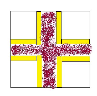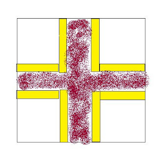 Żółte paski oznaczają taśmę, której używałam żeby uzyskać proste linie i wyraźne krawędzie. No więc, najpierw obklejamy dowolną taśmą (ale dosyć szeroką) kształt krzyża, ja to robiłam na oko 🙂 Środek zamalowujemy dokładnie farbą zmieszaną z medium. Bardzo szybko wysycha, więc trzeba pamiętać żeby z każdym elementem szybko się uwinąć. Odklejamy delikatnie taśmę zanim farba wyschnie.