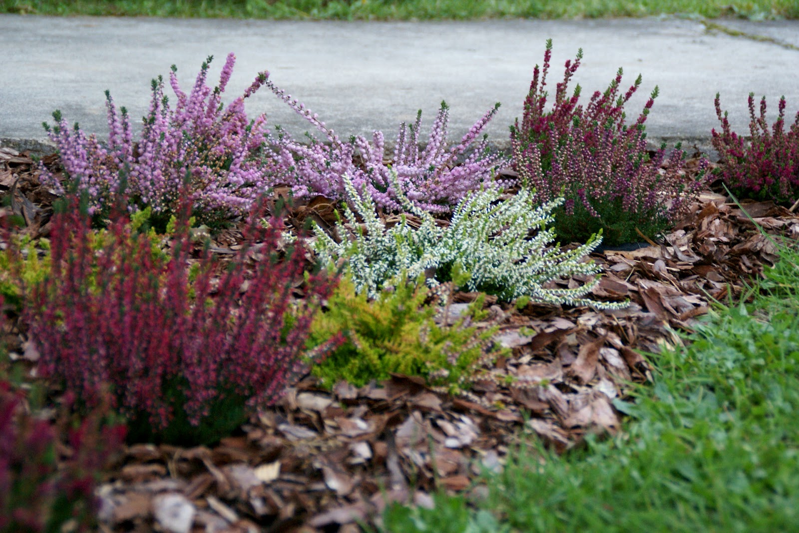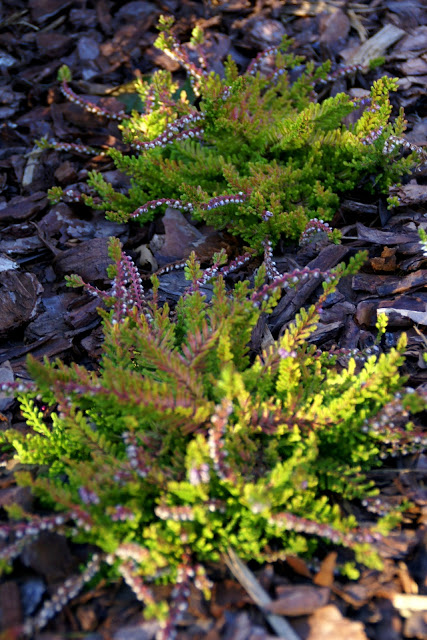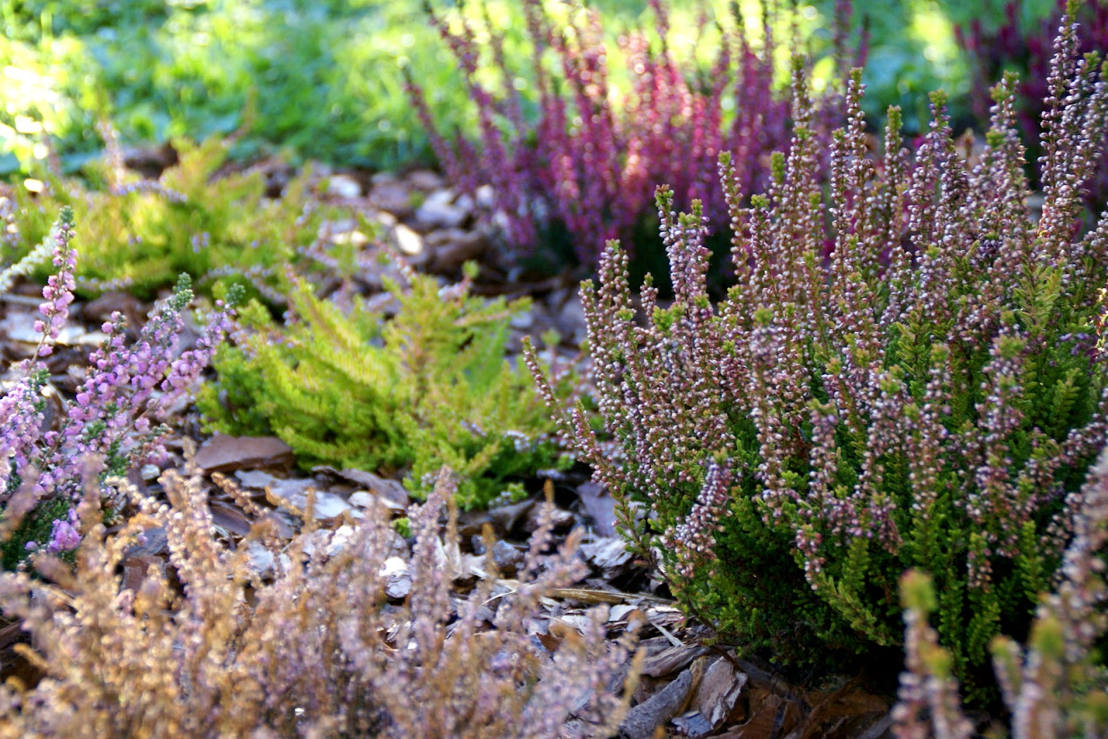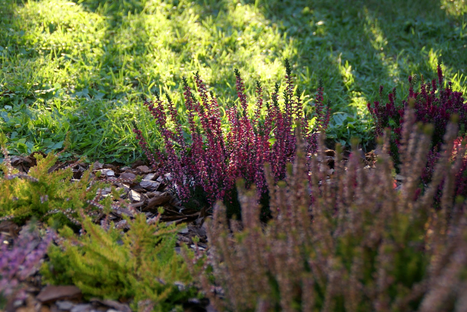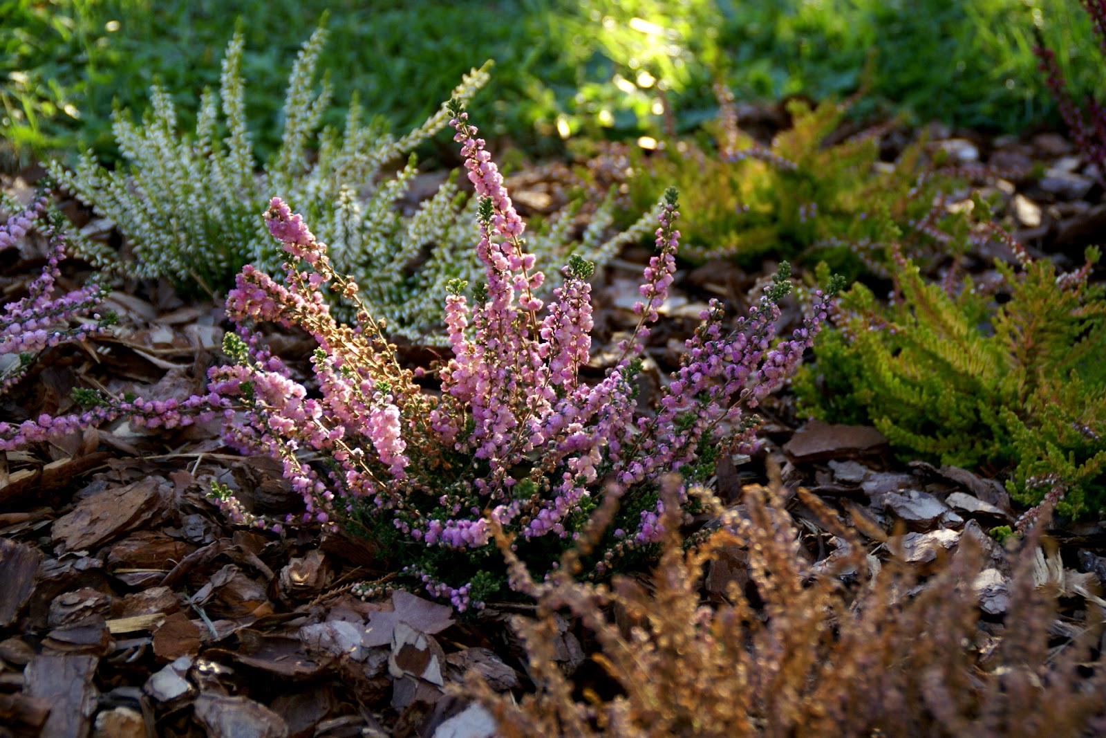 Ja w sumie zasadziłam 28 wrzosów w kilku odmianach (najlepiej sadzić je w grupach – co najmniej po 3 sztuki z każdego gatunku, dzięki temu unikniemy 'pstrokacizny’). Poza tym zużyłam też trzy worki ściółki dla wrzosowatych (bardzo kwaśne podłoże – torfowe, ph 3,5-5), dwa worki ziemi kwiatowej uniwersalnej i dwa worki kory. Sadząc wrzosy i wrzośce koniecznie trzeba postarać się o porządne przygotowanie miejsca, w którym będą rosły. W związku z tym spędziłam cały pierwszy dzień na przekopywaniu, a właściwie wykopywaniu ziemi – usunęłam ją na głębokość ok. 20cm i zamieniłam na mieszankę podłoża torfowego, ziemi uniwersalnej i miejscowej ziemi. Później rozłożyłam agrowłókninę i porozstawiałam wrzosy na swoich miejscach. Przez cały następny dzień sadziłam rośliny i obsypywałam je korą (która dodatkowo będzie zakwaszała podłoże). Ważne jest żeby wrzosy sadzić w odległości ok. 15-25cm, przy czym większe gatunki mogą wymagać nawet 40cm wolnej przestrzeni na rozrost.