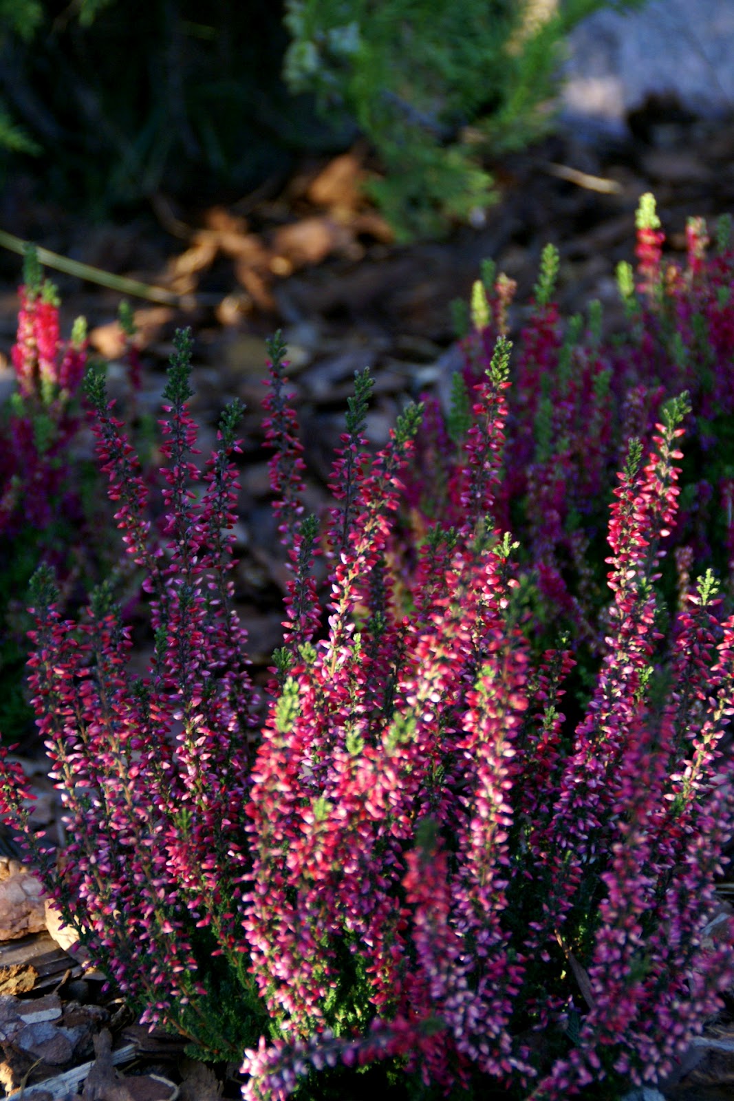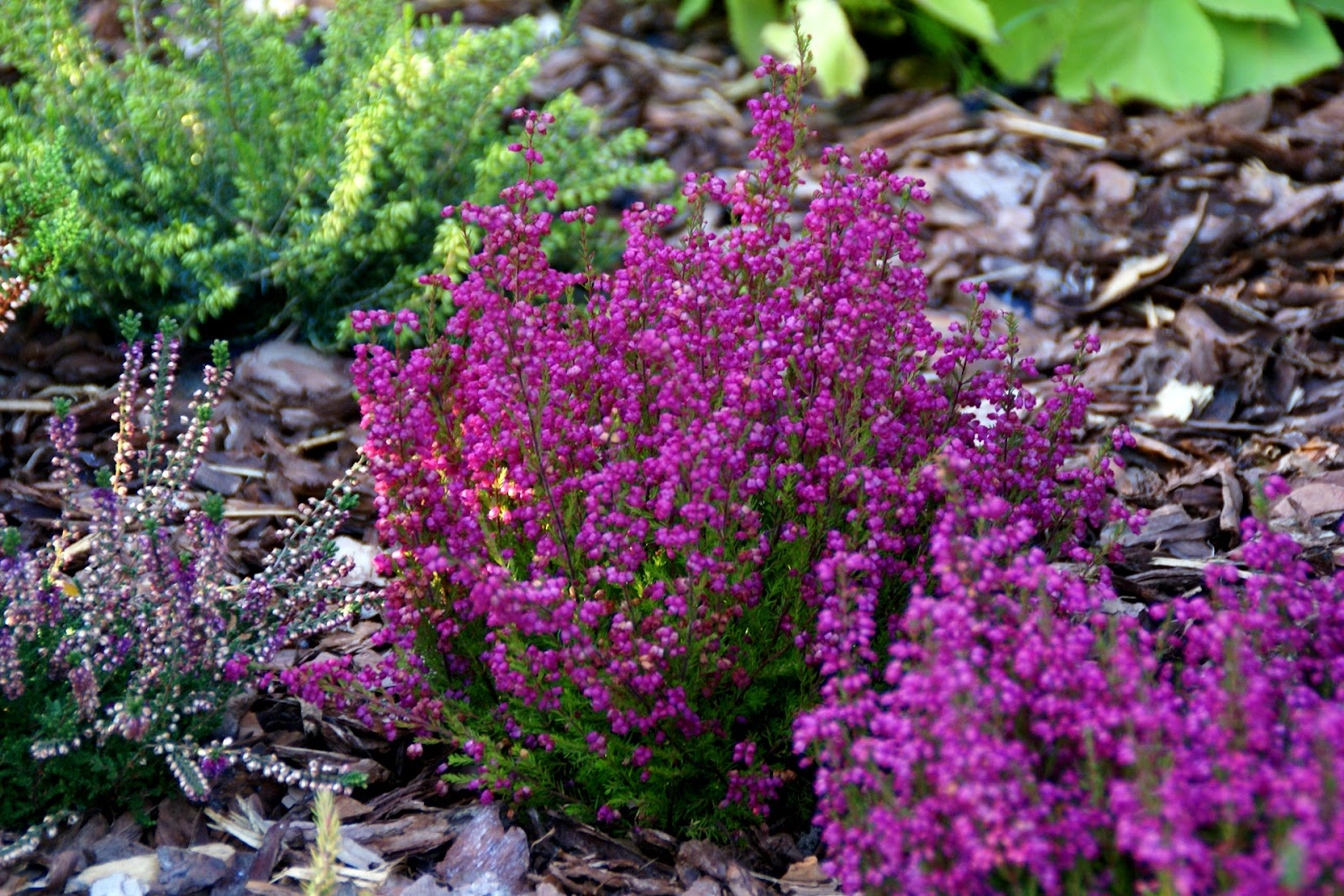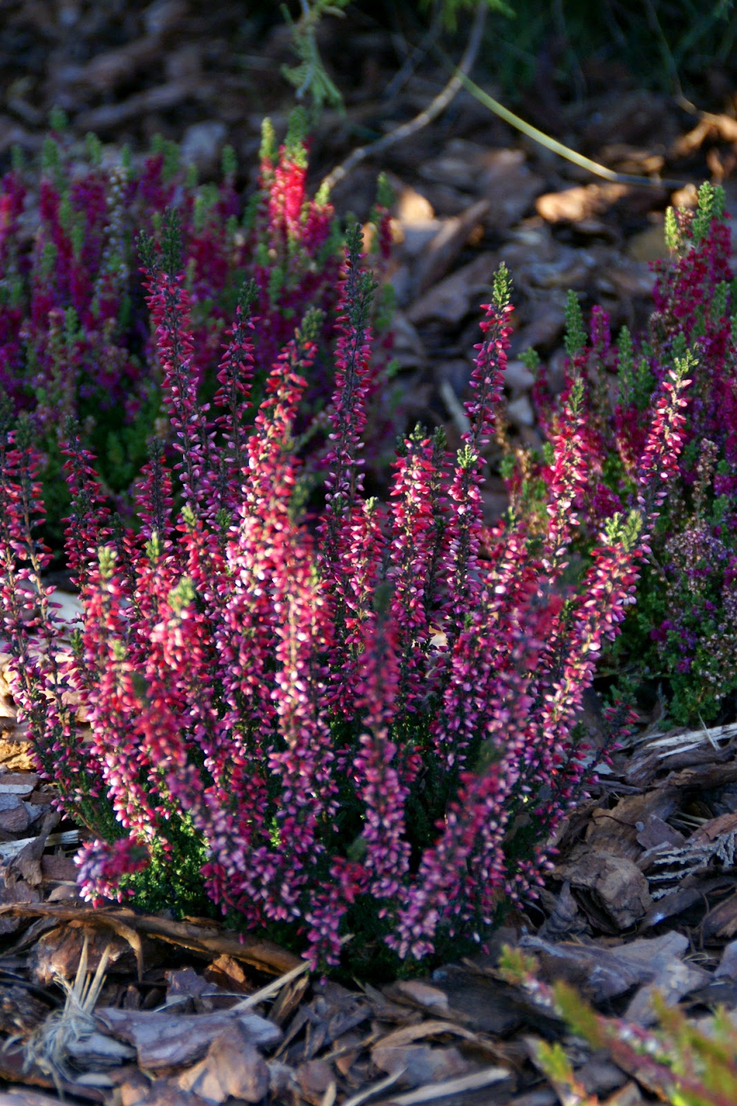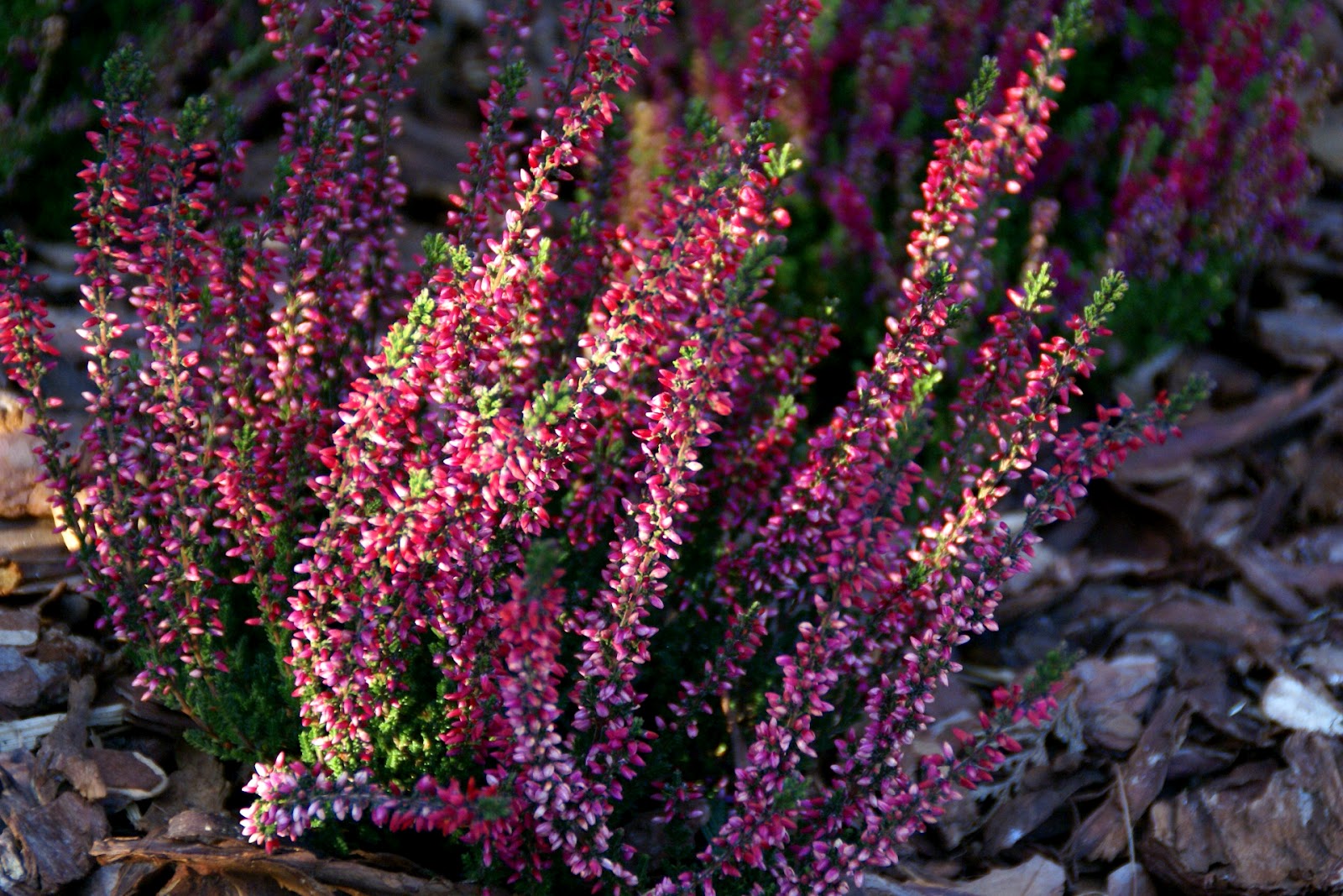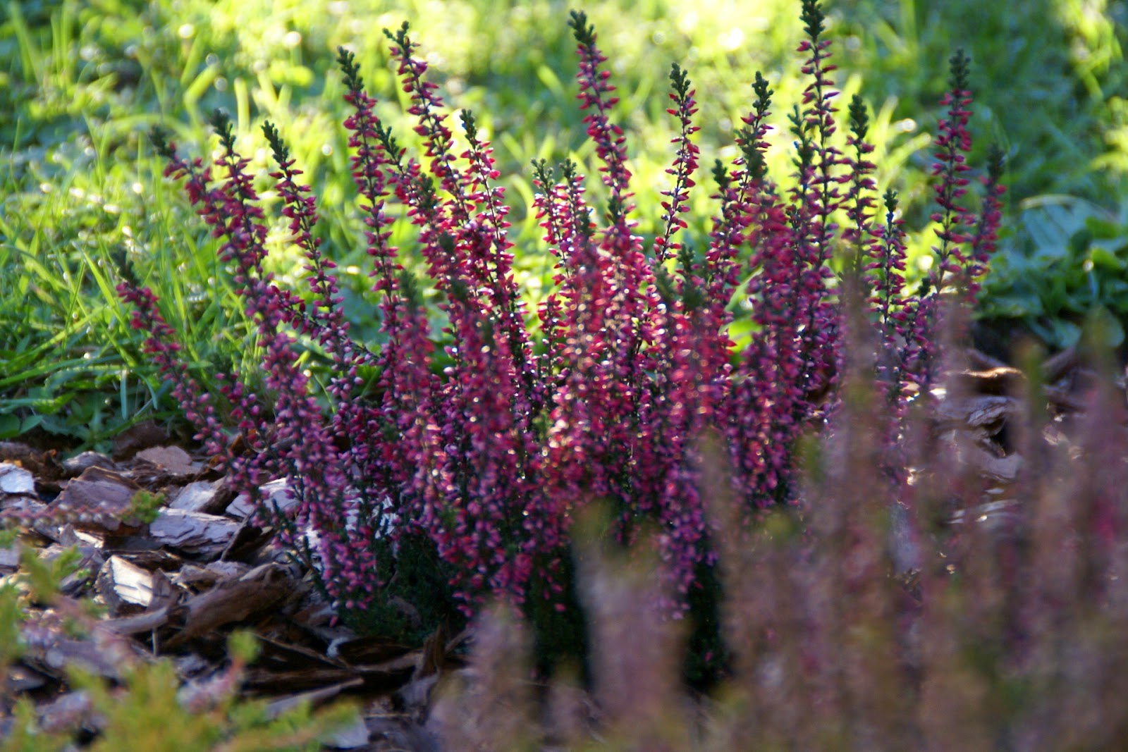 Ja w sumie zasadziłam 28 wrzosów w kilku odmianach (najlepiej sadzić je w grupach – co najmniej po 3 sztuki z każdego gatunku, dzięki temu unikniemy 'pstrokacizny’). Poza tym zużyłam też trzy worki ściółki dla wrzosowatych (bardzo kwaśne podłoże – torfowe, ph 3,5-5), dwa worki ziemi kwiatowej uniwersalnej i dwa worki kory. Sadząc wrzosy i wrzośce koniecznie trzeba postarać się o porządne przygotowanie miejsca, w którym będą rosły. W związku z tym spędziłam cały pierwszy dzień na przekopywaniu, a właściwie wykopywaniu ziemi – usunęłam ją na głębokość ok. 20cm i zamieniłam na mieszankę podłoża torfowego, ziemi uniwersalnej i miejscowej ziemi. Później rozłożyłam agrowłókninę i porozstawiałam wrzosy na swoich miejscach. Przez cały następny dzień sadziłam rośliny i obsypywałam je korą (która dodatkowo będzie zakwaszała podłoże). Ważne jest żeby wrzosy sadzić w odległości ok. 15-25cm, przy czym większe gatunki mogą wymagać nawet 40cm wolnej przestrzeni na rozrost.