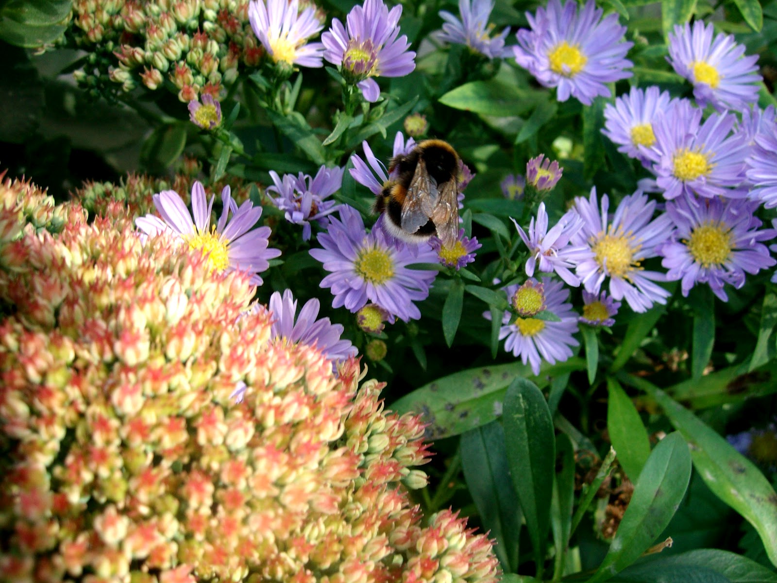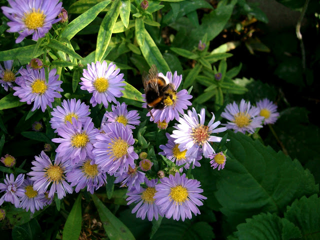 Kiedy robiłam porządek w innym miejscu ogródka, w odwiedziny przyleciał bąk, a ja poleciałam po aparat 🙂