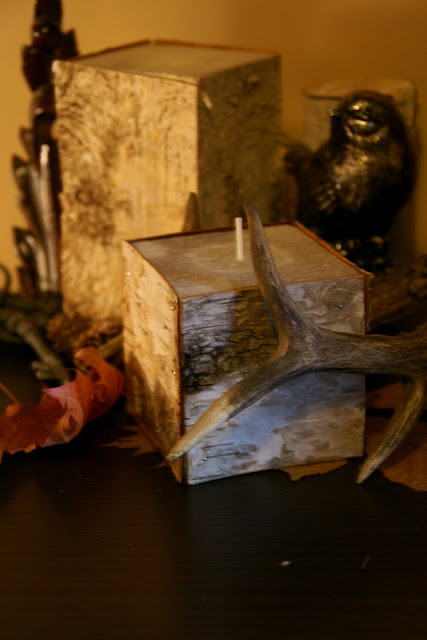 Świece 'obite’ korą to jeden z moich ulubionych pomysłów. Proste i efektowne.
