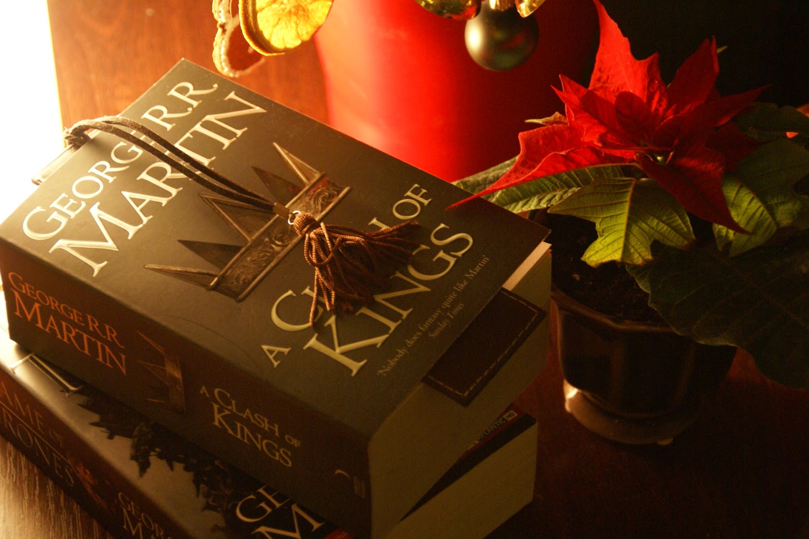 Nie mogłam się powstrzymać, żeby nie pokazać Wam jednego z moich świątecznych prezentów 🙂 Dostałam dwie książki z serii Pieśni Lodu i Ognia. Ostatnio bardzo popularny był serial Gra o Tron (to też tytuł pierwszego tomu Pieśni), miałam okazję obejrzeć dwa odcinki, ale z braku czasu jakoś się nie wciągnęłam. Natomiast książka to już zupełnie inna bajka 😛 Od pierwszej strony pochłonęła mnie bez litości, pierwszą część skończyłam czytać w piątek wieczorem (a zaczynałam we  wtorek rano;) To, że przeczytałam ponad 700 stron w takim czasie chyba dosyć dobitnie pokazuje co o tej książce myślę. Jeśli lubicie fantasy i podobne klimaty, to koniecznie sięgnijcie po ten tytuł. Ogromne oswojone wilki, tajemniczy mur, królestwo, w którym roi się od intryg i spisków (i to niesamowicie zagmatwanych!), po prostu nie da się przewidzieć co zdarzy się na następnej stronie. Genialne! 😛  Przy okazji, muszę też stwierdzić, że serial jest niesamowicie dokładną adaptacją (brawa dla twórców!).