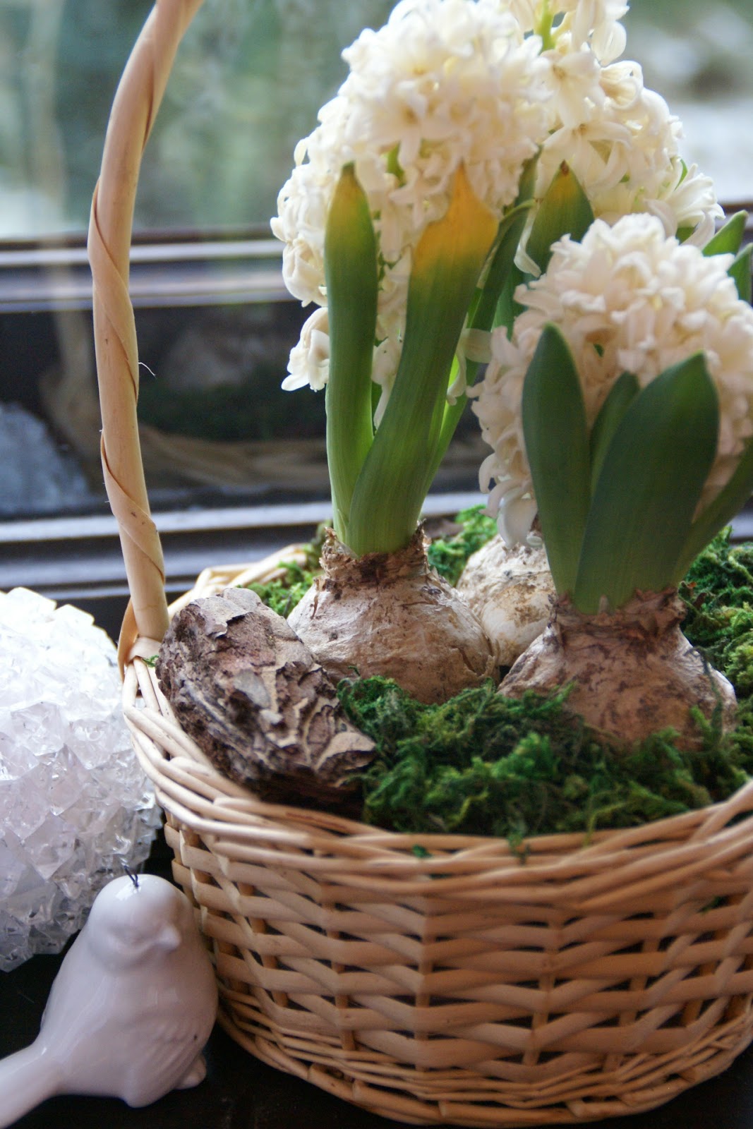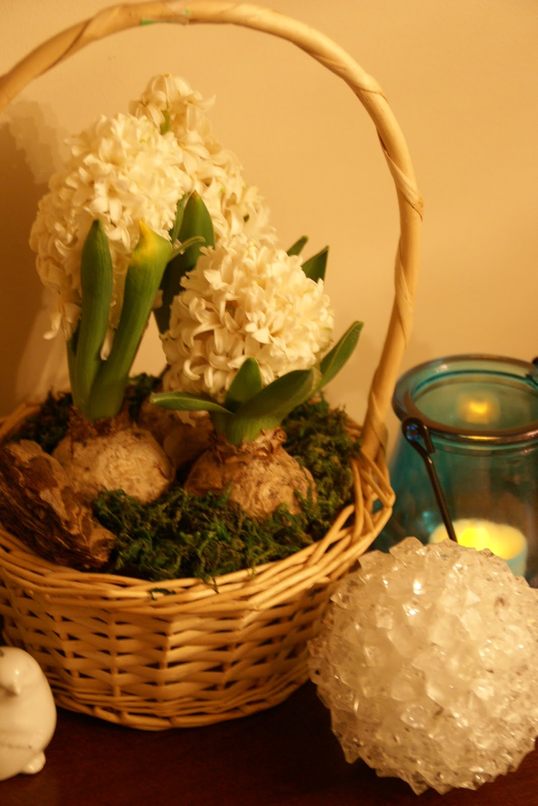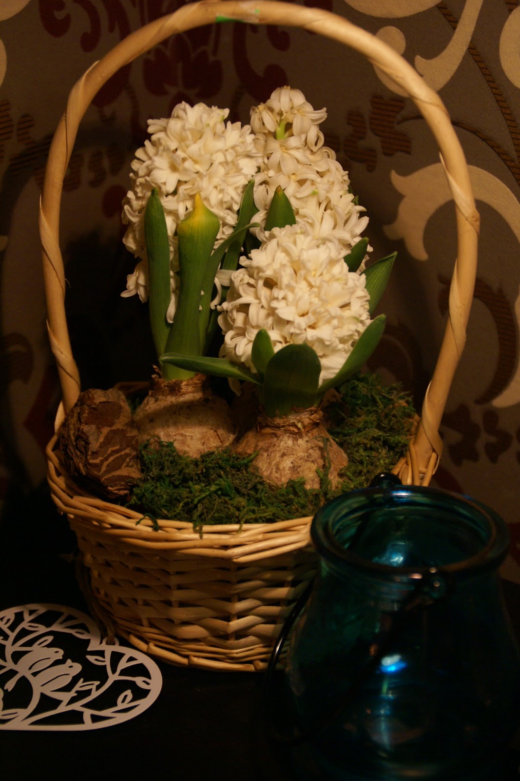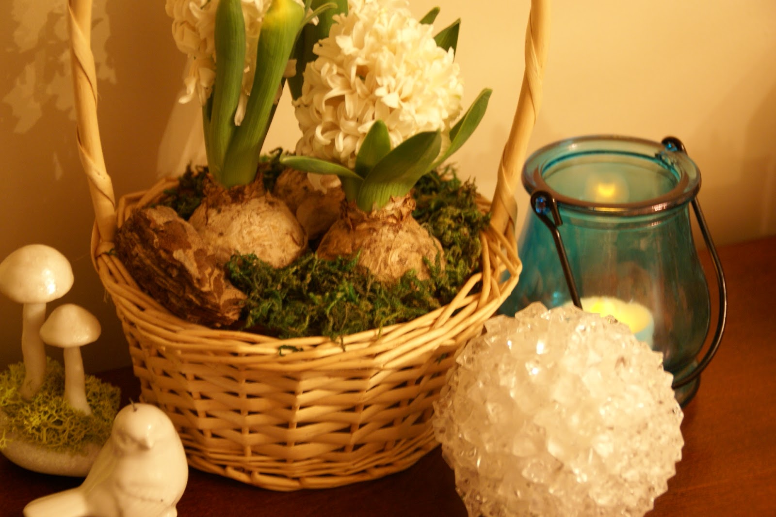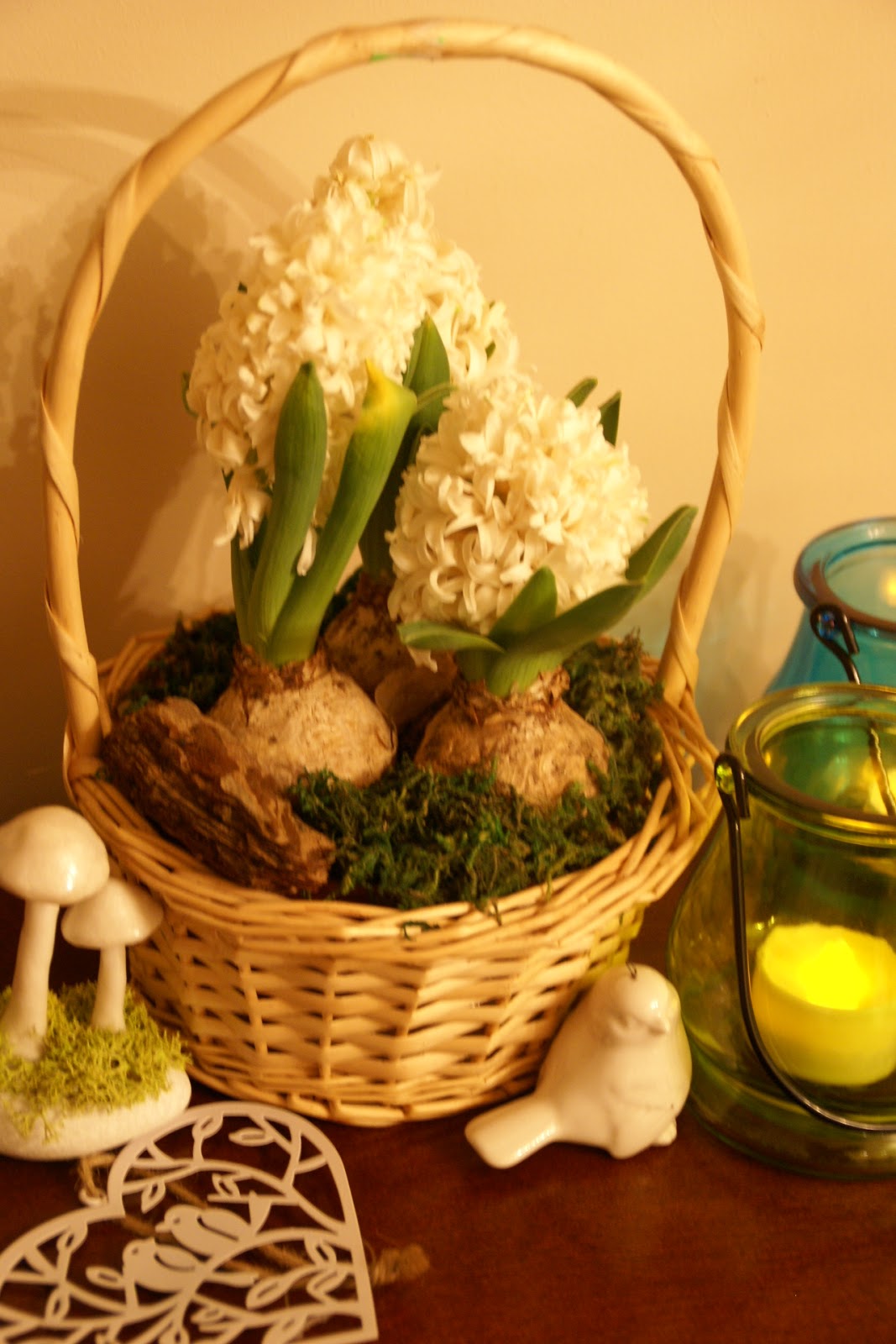 Moja biała „lodowa” kula o dziwo świetnie się sprawdza przy wiosennych dekoracjach 😉 Wygląda jak kwiaty kwitnące w śniegu. Coraz bardziej ją lubię 🙂