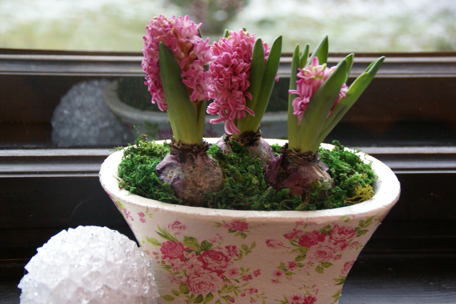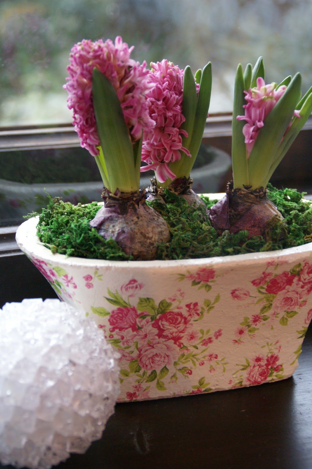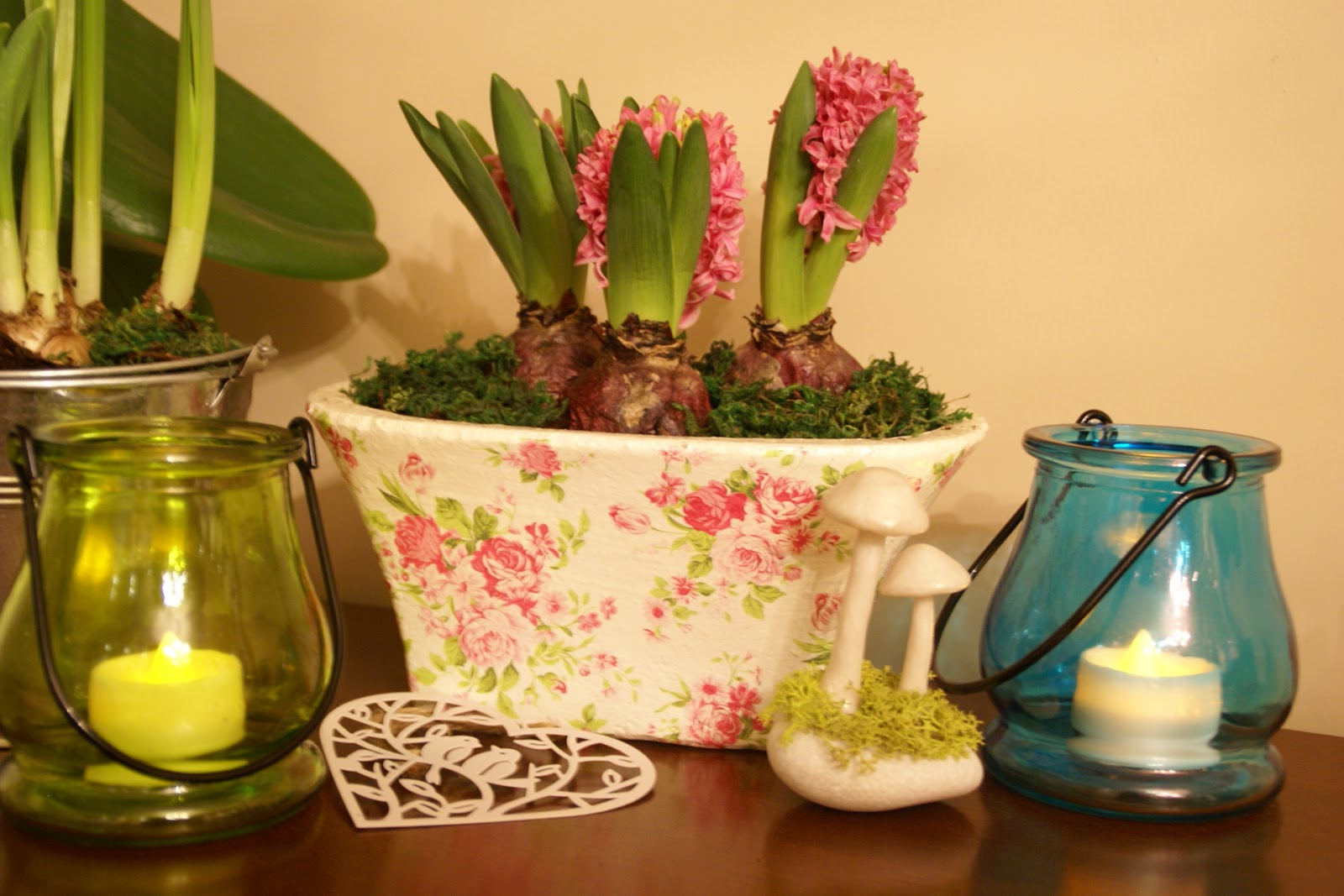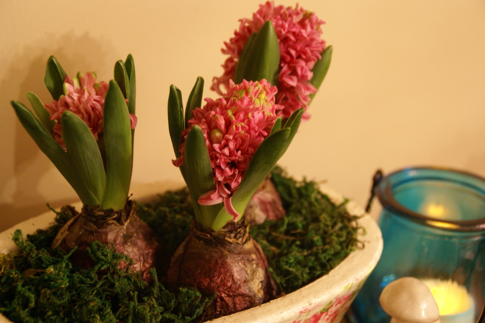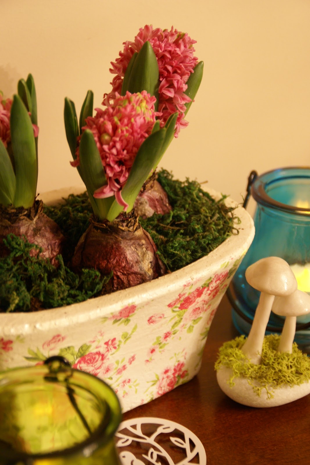 Kupiłam w Auchan hiacynty i narcyzy w plastikowych doniczkach, w domu wygrzebałam wszystko co by się nadawało do przesadzenia i zaczęłam zabawę 😛