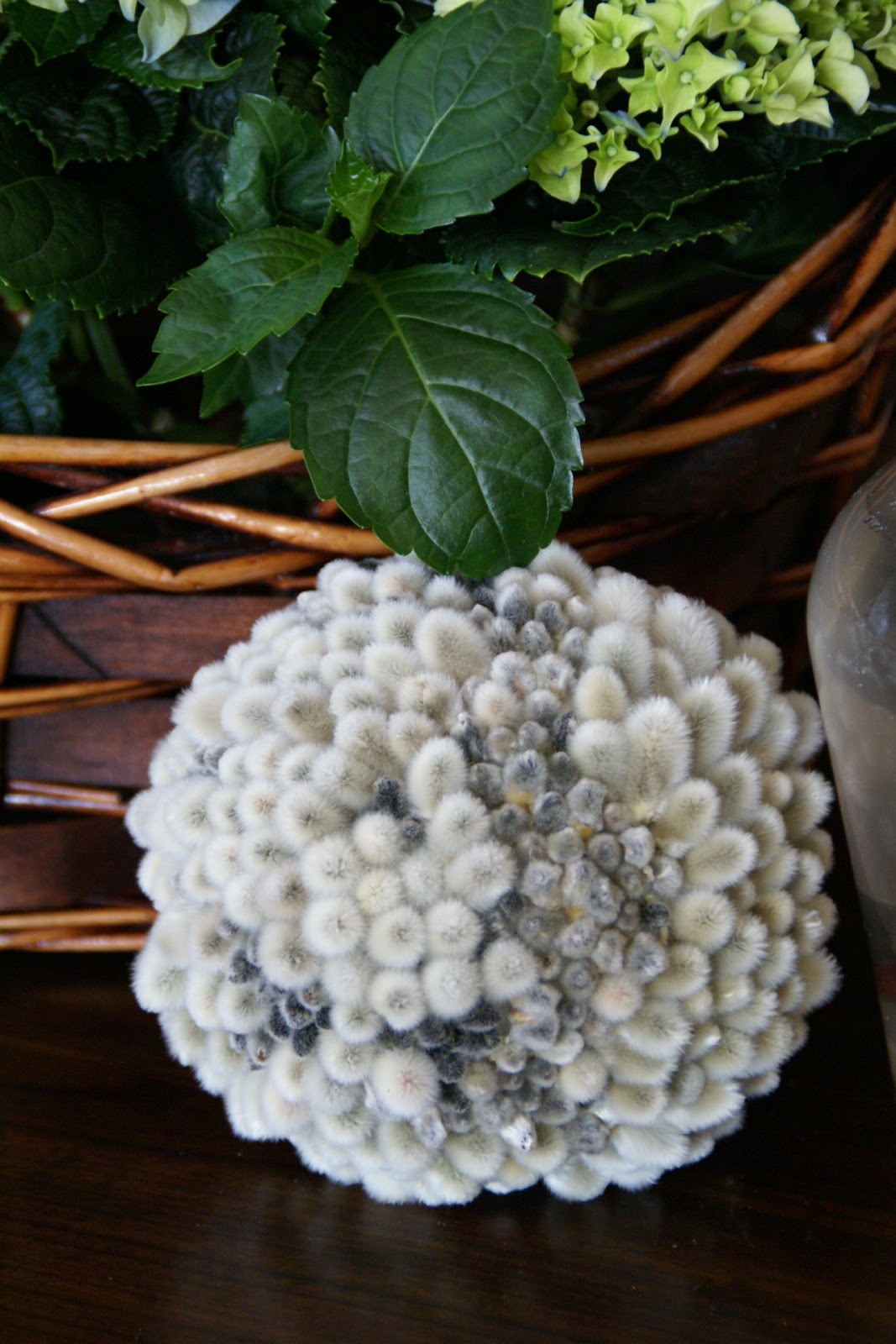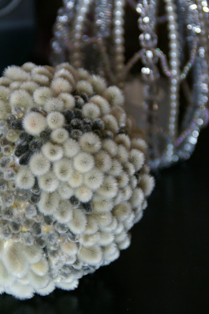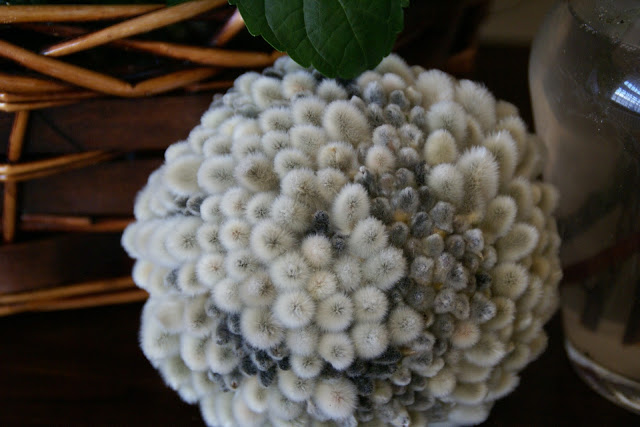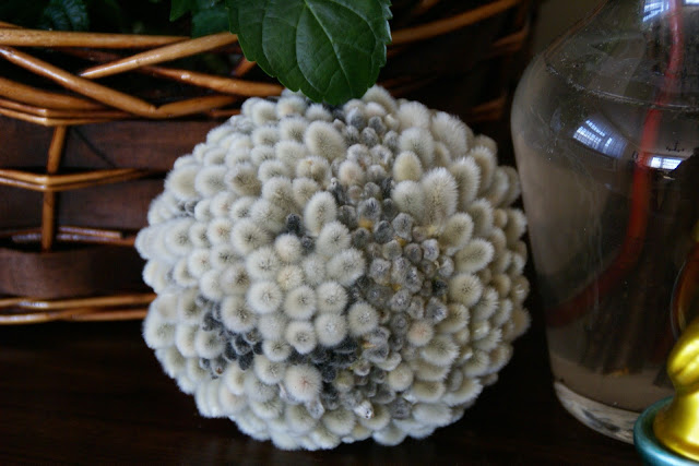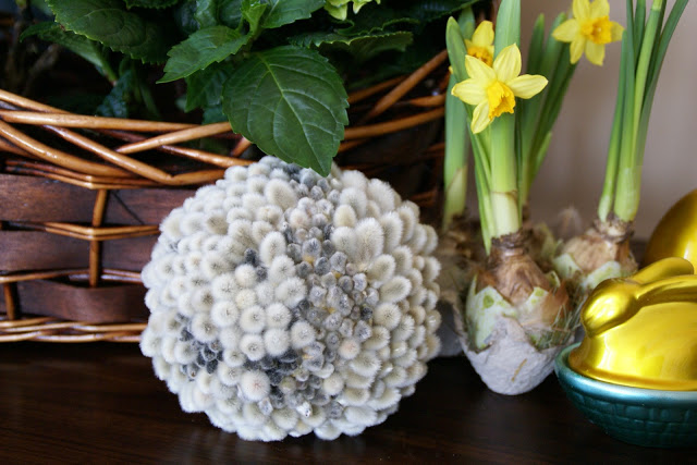 Udało mi się też zrobić „kici kulę” 😛 Obkleiłam styropianową kulę baziami, przy czym bardzo widoczna jest różnica między kupionymi a zerwanymi. Chociaż nawet mi się ta różnorodność podoba 🙂