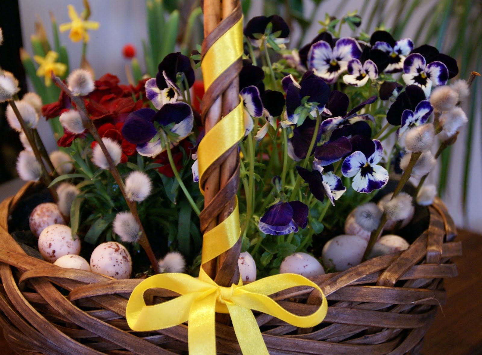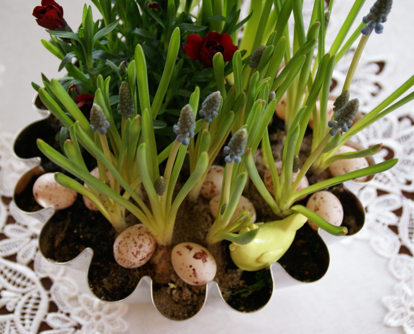 Bardzo podobają mi się wiosennie kwiatki i te maleńkie jajeczka:)