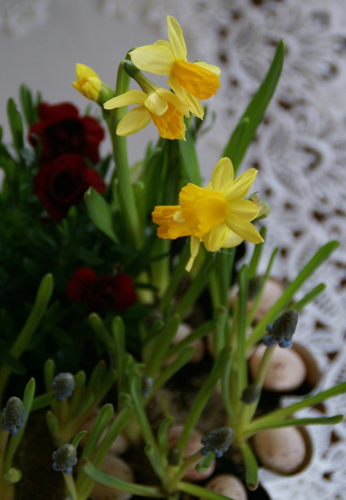 Bardzo wiosennie 🙂 czy te drobne, białe kwiatuszki to nie jest po prostu gipsówka?