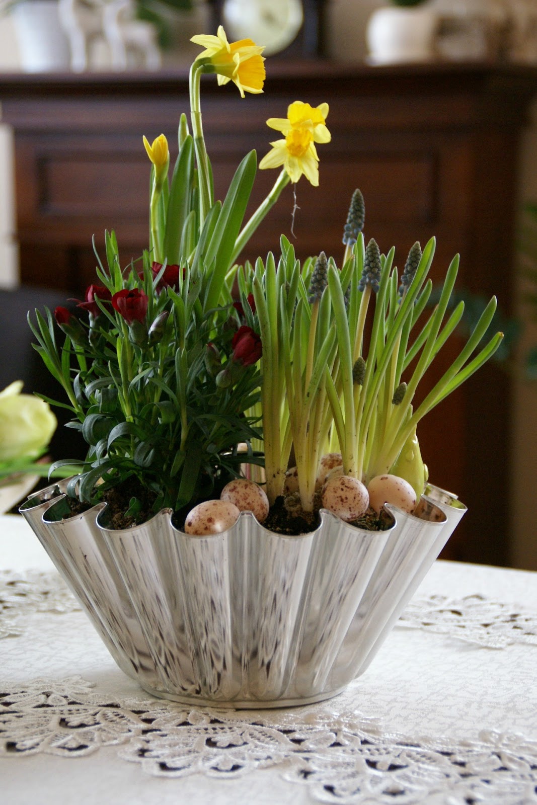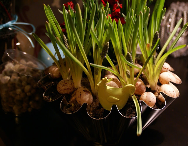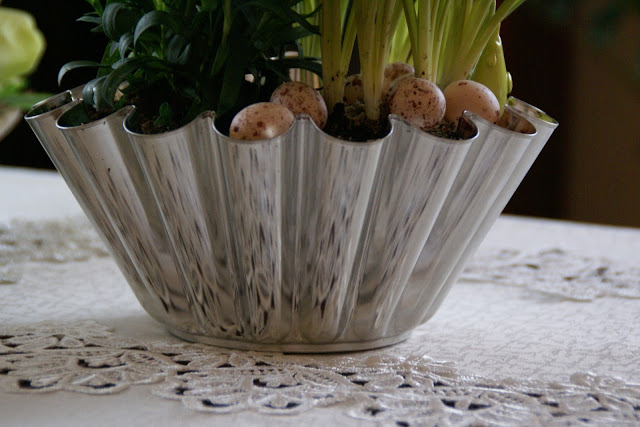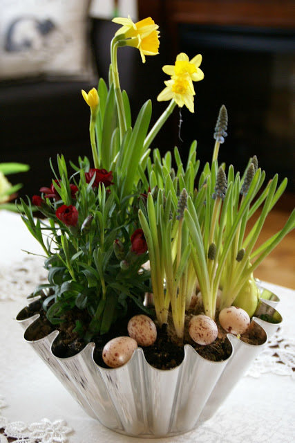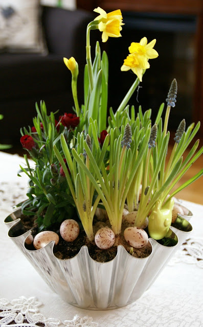 Piękne kwiaty, świetne dekoracje, a najbardziej podoba mi się forma do babki jako osłonka doniczki!