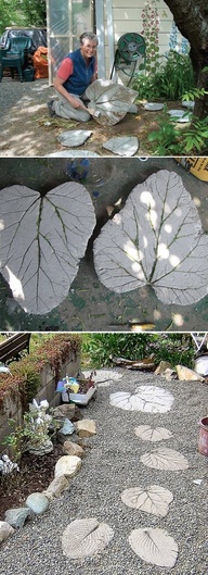 A jak uatrakcyjnić odpływ rynny? 🙂 wystarczy zrobić z cementu odcisk liścia (a oprócz chodnika można taki liść położyć pod rynną).