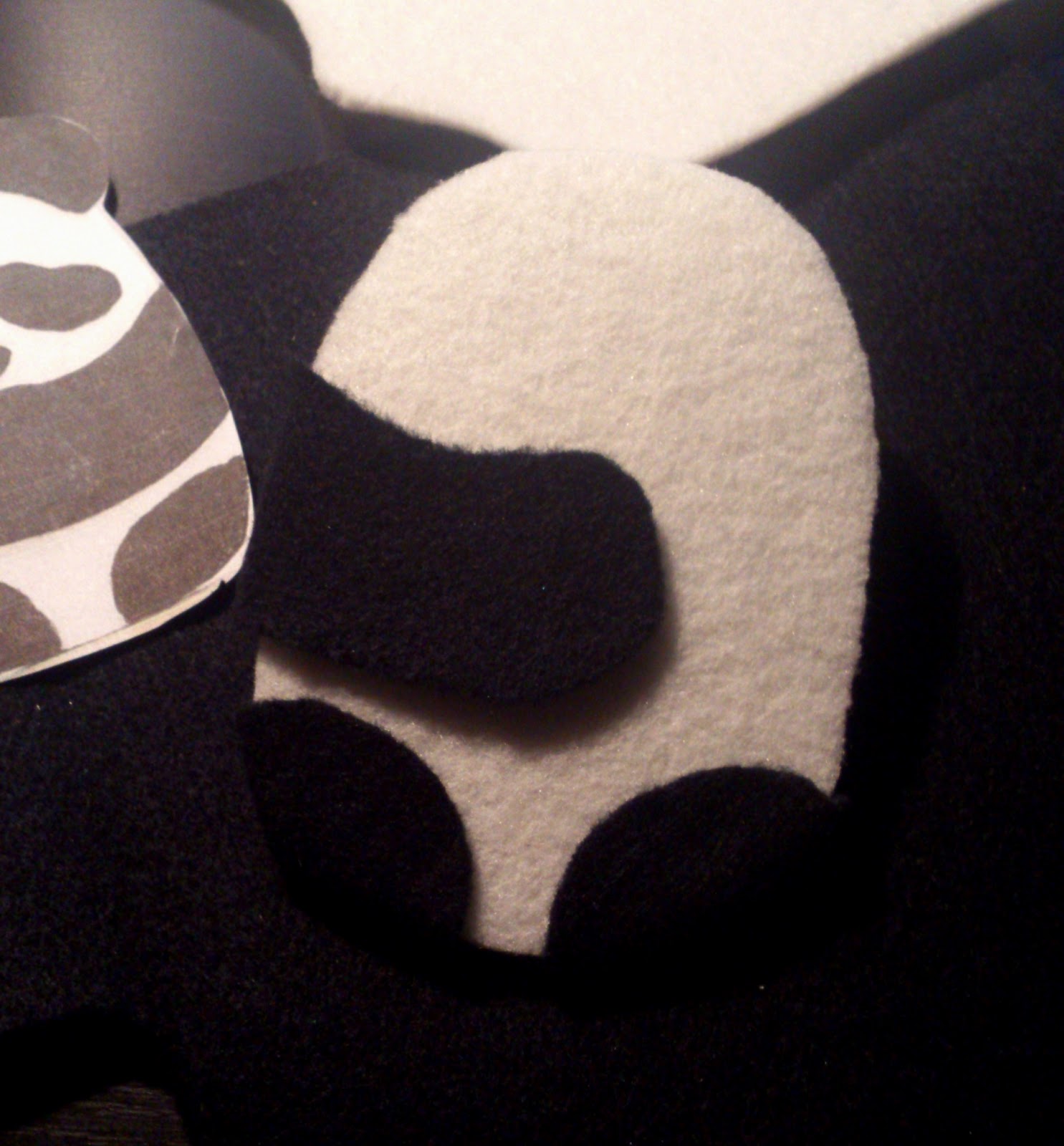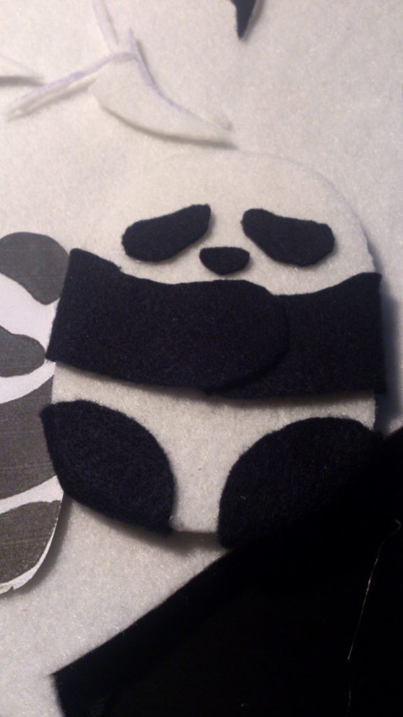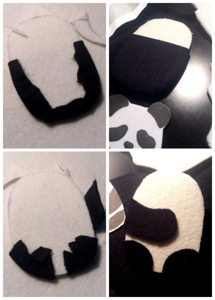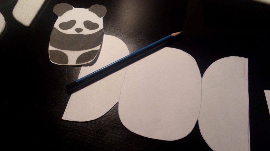 Panda miałaby wtedy szycie na plecach i na dole. Jednak później mnie olśniło, że przecież muszę przykleić łapki co wymagałoby wycinania dziur na bokach = trochę bez sensu 🙂