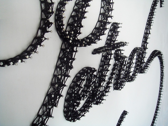 Napadł mnie kolejny głupi pomysł 😛 Na pinterest często pojawiają się pomysły z wykorzystaniem gwoździ i sznurka np. słowa czy inne obrazki, niektóre to prawdziwe dzieła sztuki 😛 niesamowicie skomplikowane, spójrzcie: