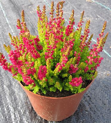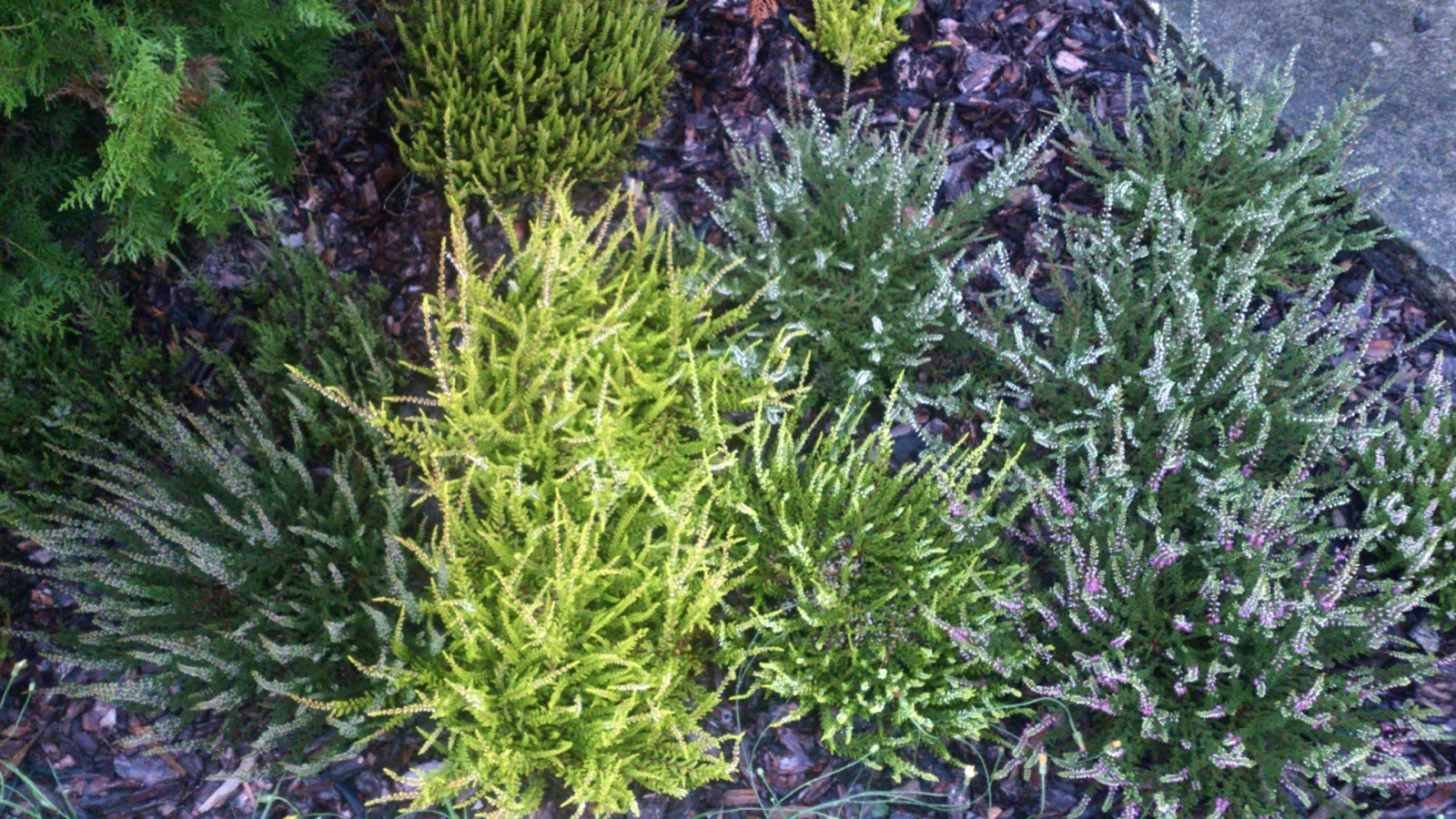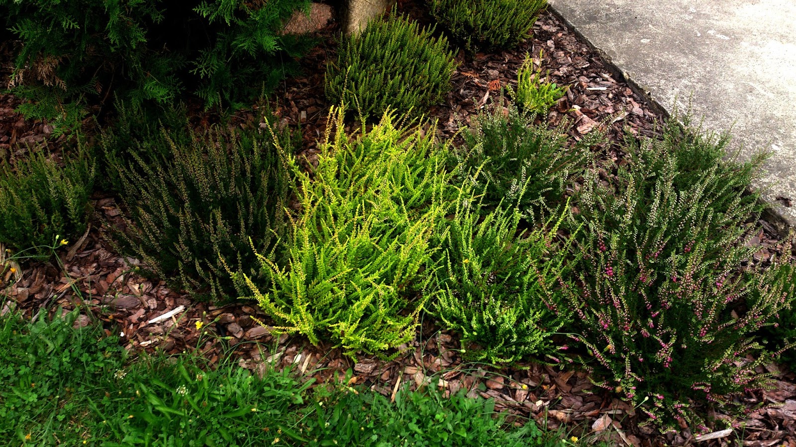 Na wiosnę (na dwóch pomarańczowych wrzosach po lewej stronie widać zielone gałązki na czubkach, właśnie wtedy można było ciąć)