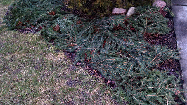 Na zimę natomiast (po przymrozkach, kiedy temperatura już utrzymywała się gdzieś w okolicach i poniżej zera) okryłam całe wrzosowisko białą (nie czarną!) agrowłókniną i gałęziami iglaków. Przykryte dodatkowo śniegiem wrzosiki przeżyły zimę bez zająknięcia 😛 Na wiosnę kiedy temperatura była już w okolicach zera (a słońce porządnie świeciło), zdjęłam agrowłókninę, ale zostawiłam gałęzie, noce były jeszcze dość zimne, nie chciałam wpadki na samym finiszu 😛