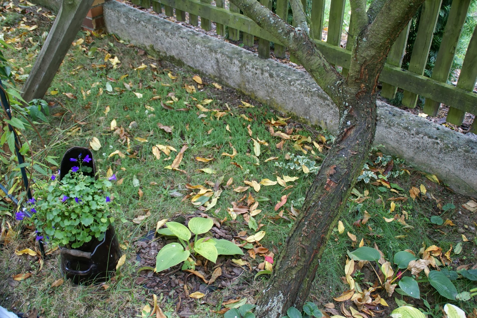 To teraz jak to wygląda u mnie:) Wybrałam sobie takie miejsce przy płocie, pod brzoskwinią, 2,5x1m. Nie da się tam dojść kosiarką, zawsze muszę uskramniać trawę ręcznie, więc miejsce idealne ;P