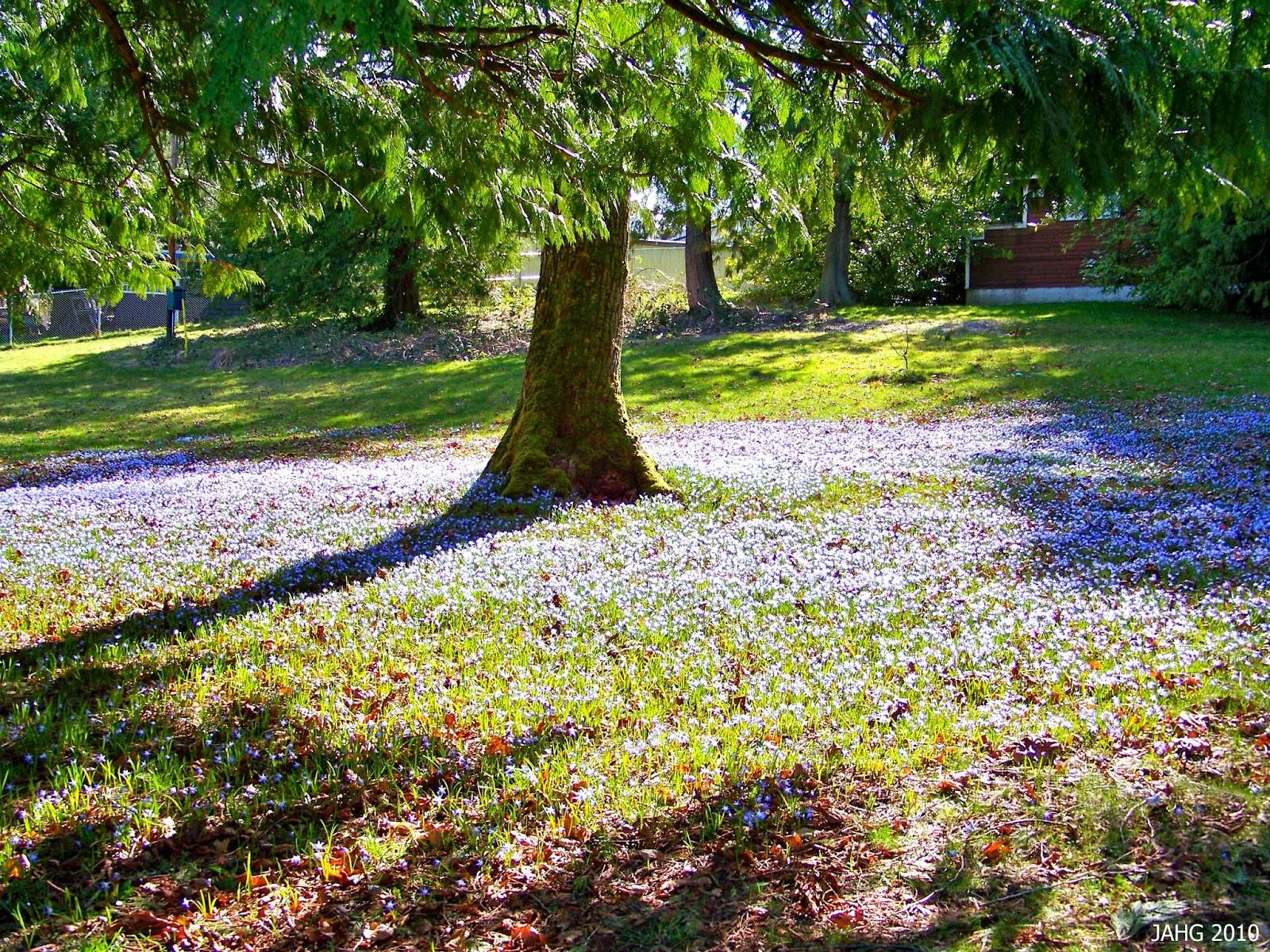 Absolutnym faworytem są krokusy, przebiśniegi i cebulice syberyjskie, poza tym nadają się też szafirki, zawilce, psiząb i narcyzy (ale tylko te miniaturowe gatunki, duże okazałe kwiaty zostały stworzone na rabaty – słabo poradzą sobie na trawniku). Generalnie tulipany są dość trudne do naturalizacji, ale dużo zależy też od odmiany, w internecie znalazłam listę tych, które się nadają: