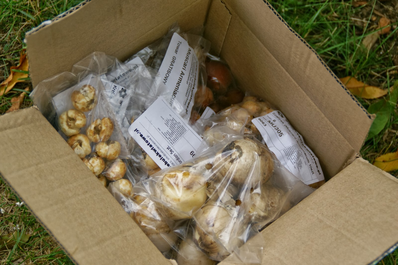 W paczce były: czosnek (w inne miejsce), dwa gatunki zawilców, szafirki, krokusy, irysy i szachownice: