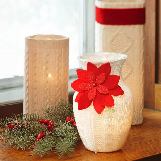 Pergamin w różne wzory świąteczne jest do kupienia na allegro, taniutki. Wystarczy tylko przykleić taśmą do wazonu i mamy takie oto ładne świeczniki 🙂