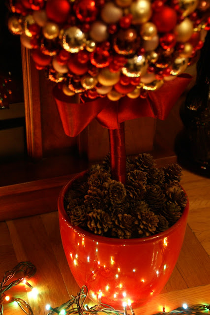 Bardzo prosta do zrobienia kula z szyszek, wystarczy pistolet z klejem i dużo szyszek, nawet styropianowej kuli nie trzeba kupować (większe bywają dosyć drogie) – można sobie samemu z gazet ukulać 😉