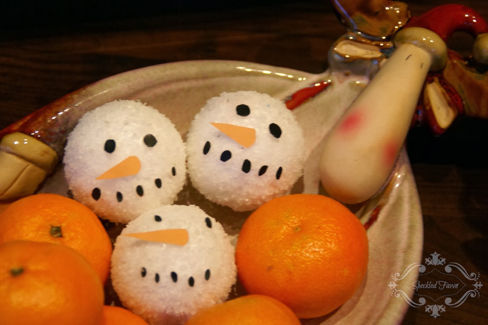 Wczoraj szybciutko zrobiłam bałwanki ze styropianowych kulek otoczonych solą gruboziarnistą (czy jak tam się ona nazywa;).