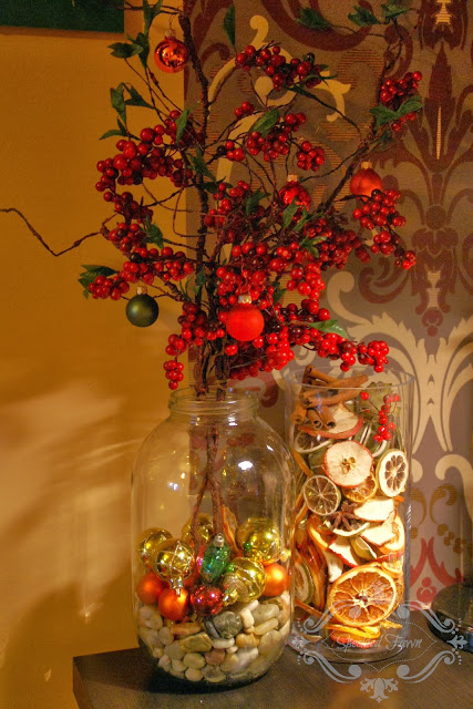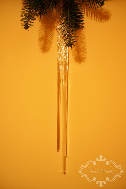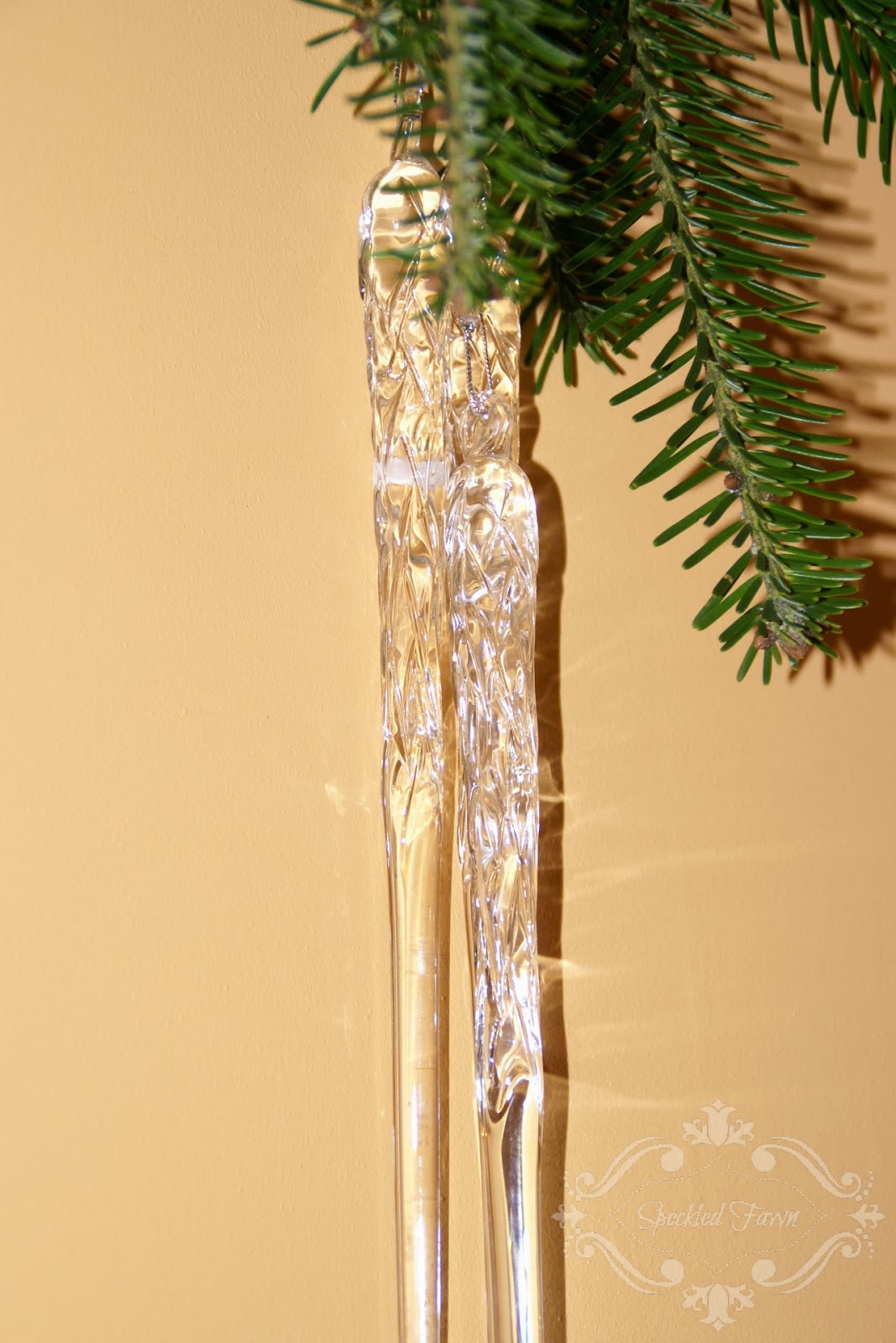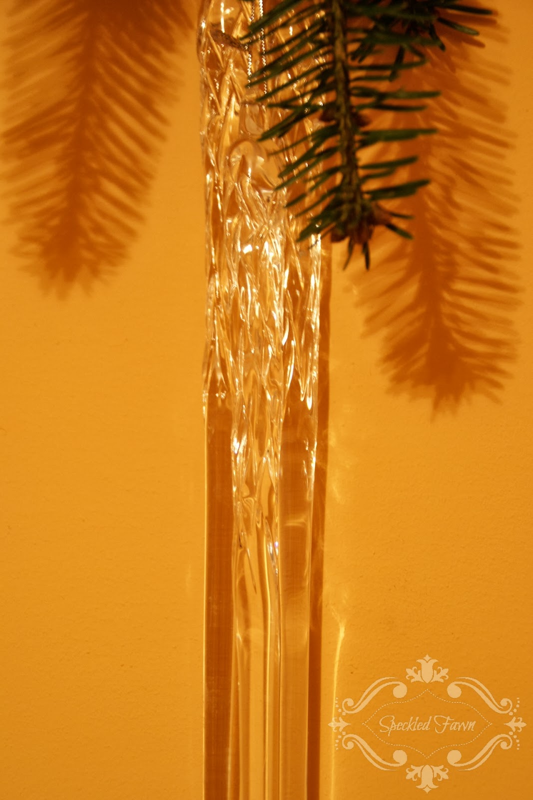 Oprócz małych sopelków, które pokazywałam na kominku i choince, kupiłam też 40cm sople ze szkła, pięknie wyrzeźbione :)) Niestety ich też nie mogłam w tym roku zawiesić tam gdzie planowałam, więc są częścią stroika na ścianie.