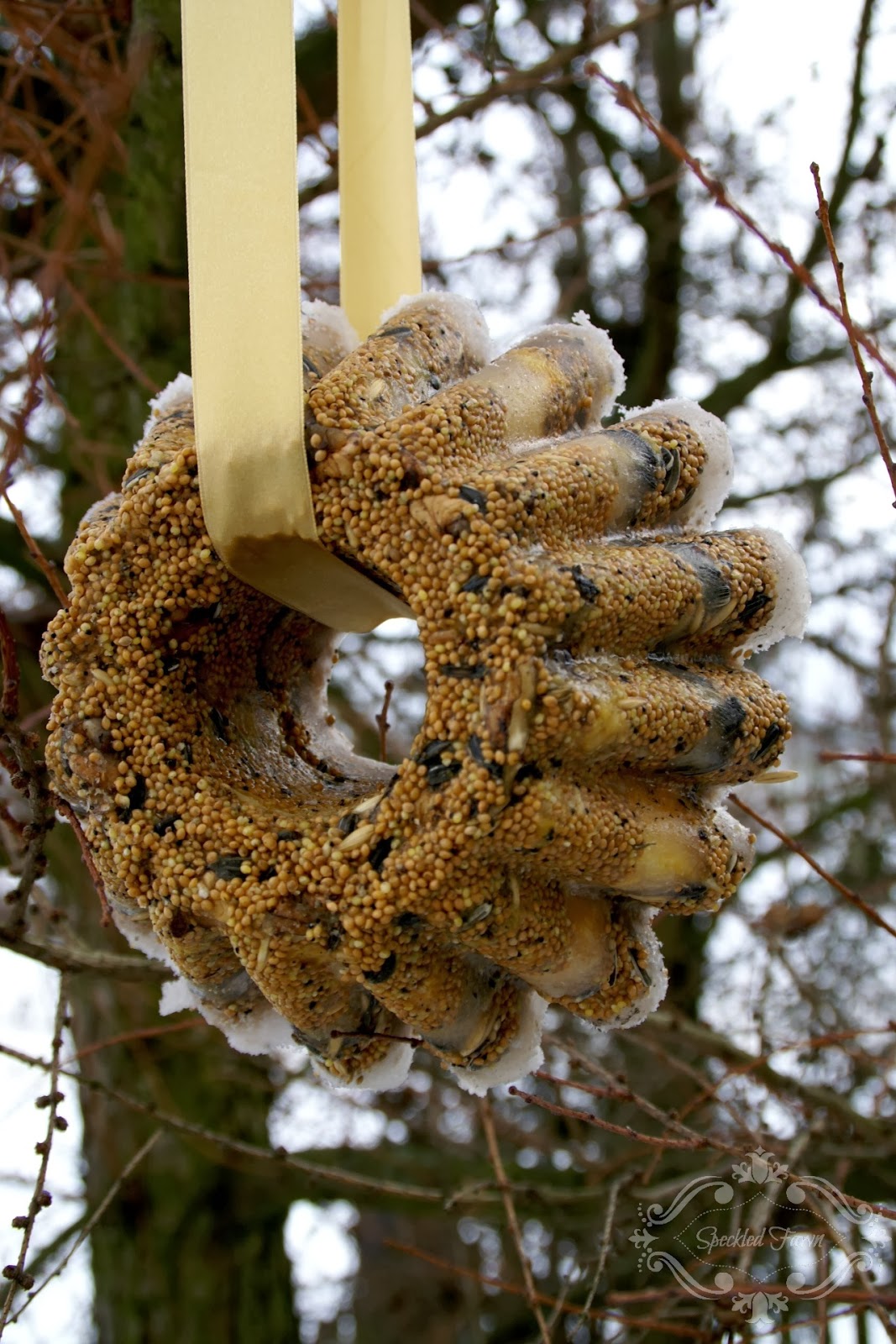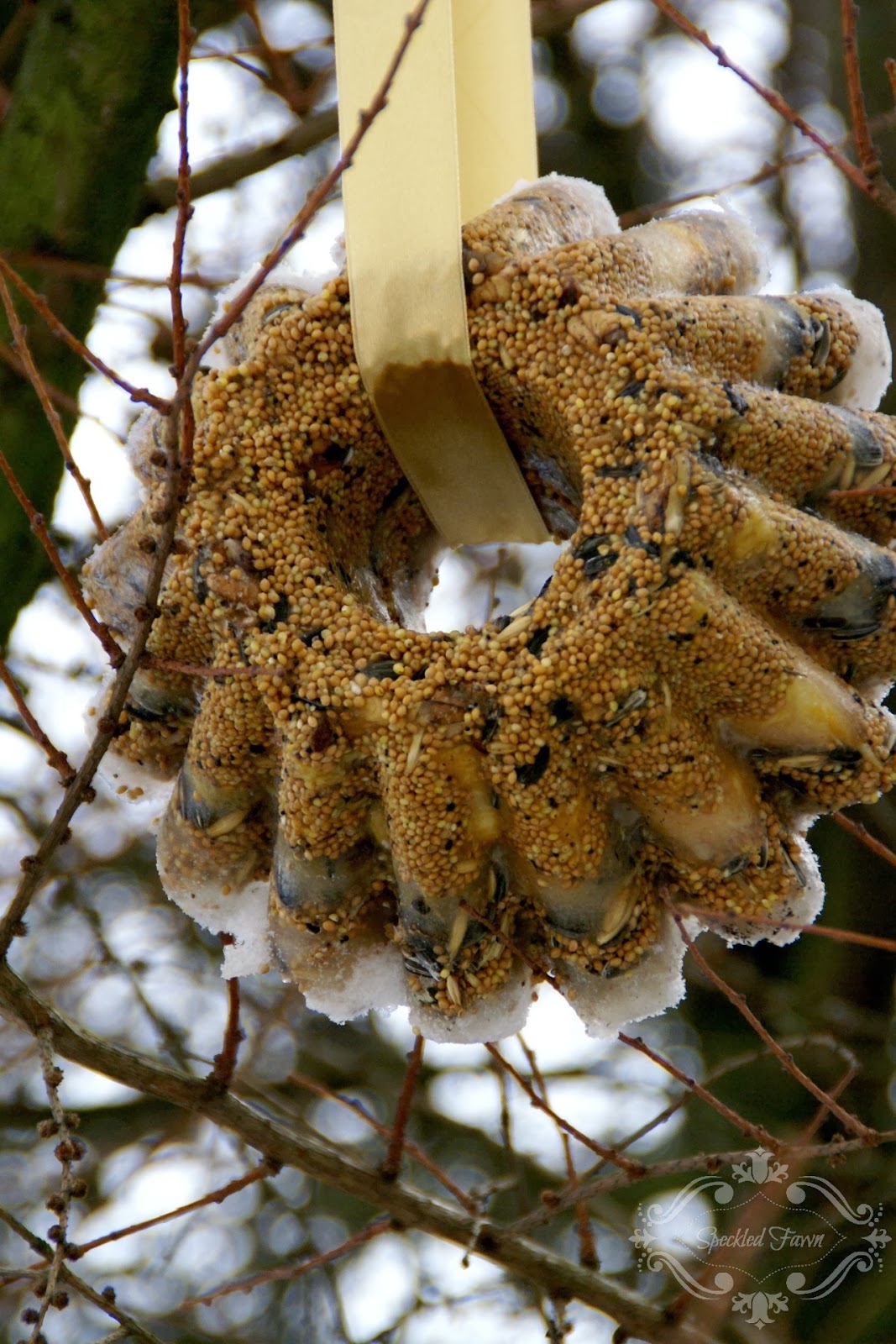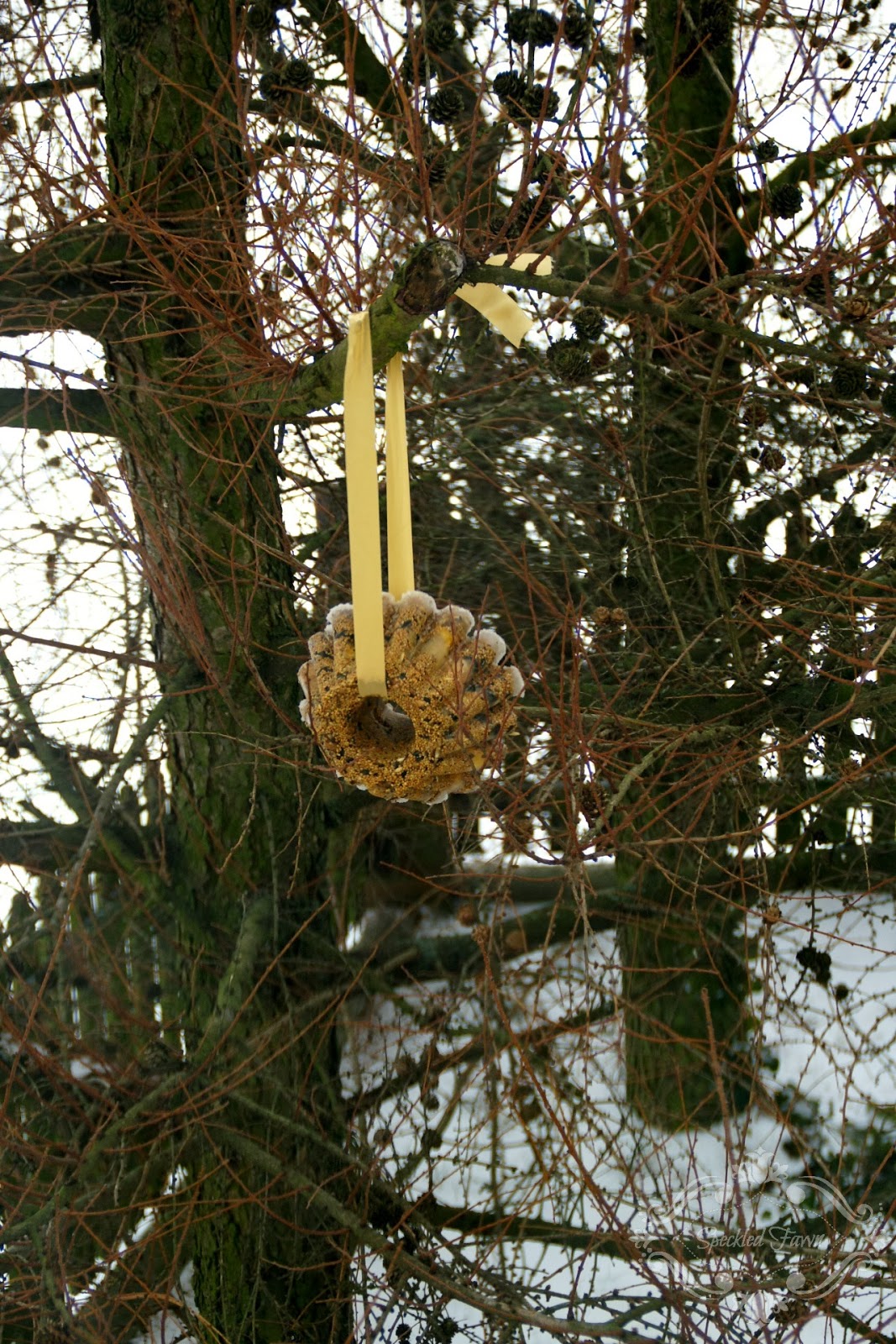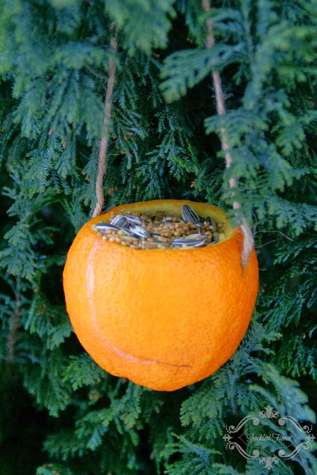 Zrobienie takich karmników trwa chwilę. Trzeba tylko kupić mieszankę ziaren, pomarańcze no i (jeśli akurat nie macie w domu) sznurek i żelatynę. Pomarańczę trzeba wydrążyć i przewlec sznurki, później nasypać smakołyków i zalać żelatyną albo wodą. Następnie do zamrażarki na jakiś czas i gotowe 🙂