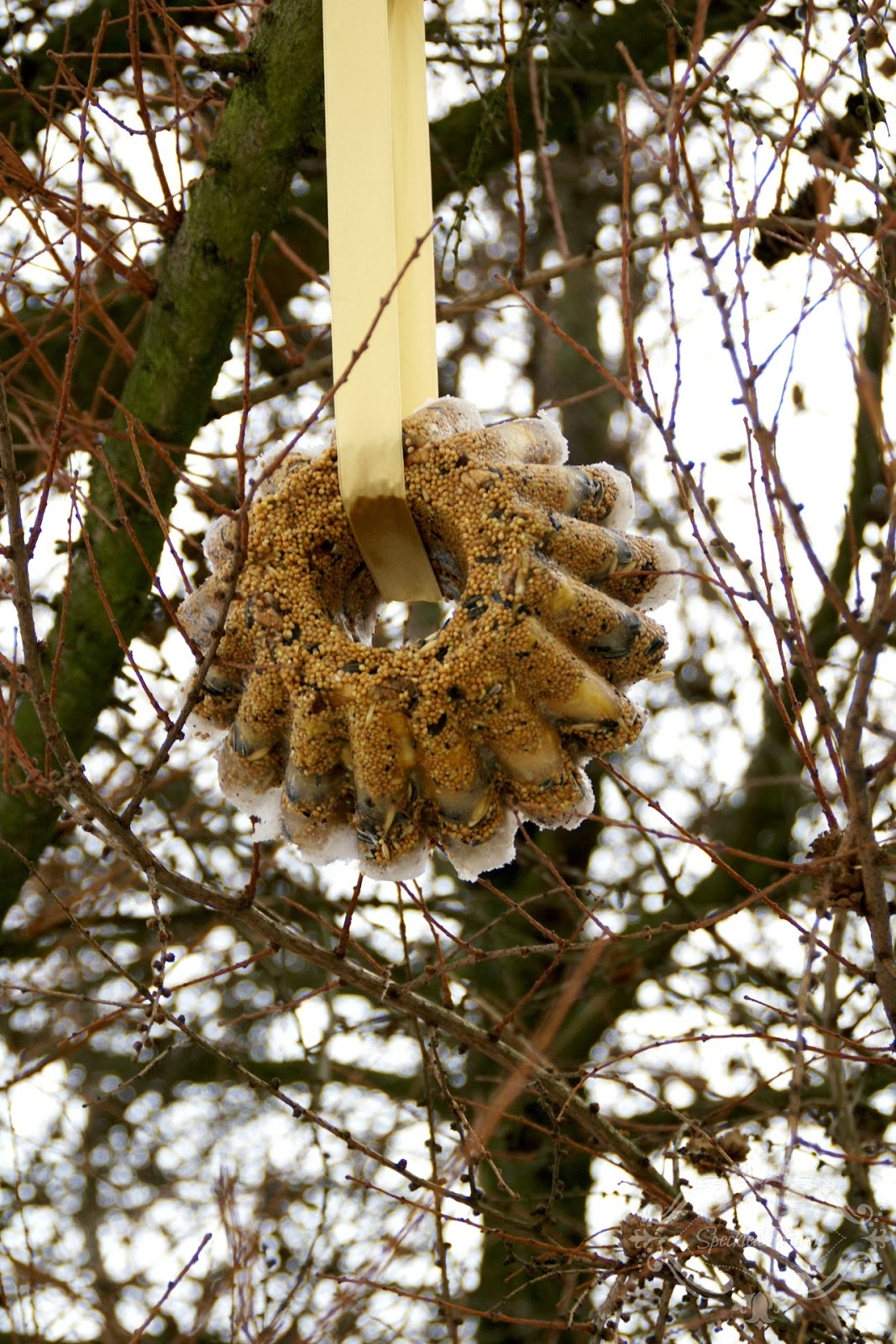 Wymyśliłam sobie wczoraj, że podokarmiam ptaszki z okolicy 😉 Niestety same wróble, ale czaję się na jakieś sikorki albo rudziki, więc może mój szwedzki stół przyciągnie nowych gości. Jeszcze w zeszłym roku trafiłam gdzieś tam na dwa fantastyczne pomysły na „karmniki”. Pierwszy to wydrążone pomarańcze, muszę powiedzieć, że wyglądają na prawdę prześlicznie 😀 Powiesiłam je zaraz na przeciwko okna, więc widok mam teraz super ;))
