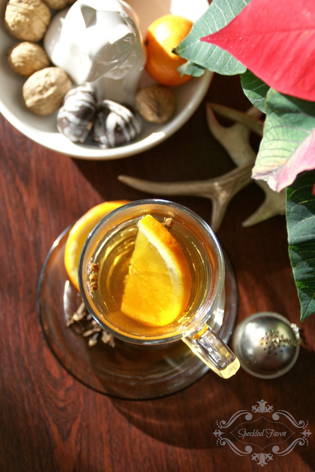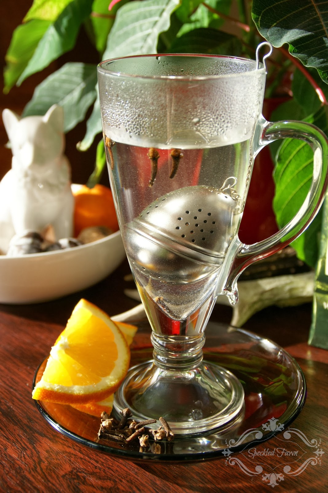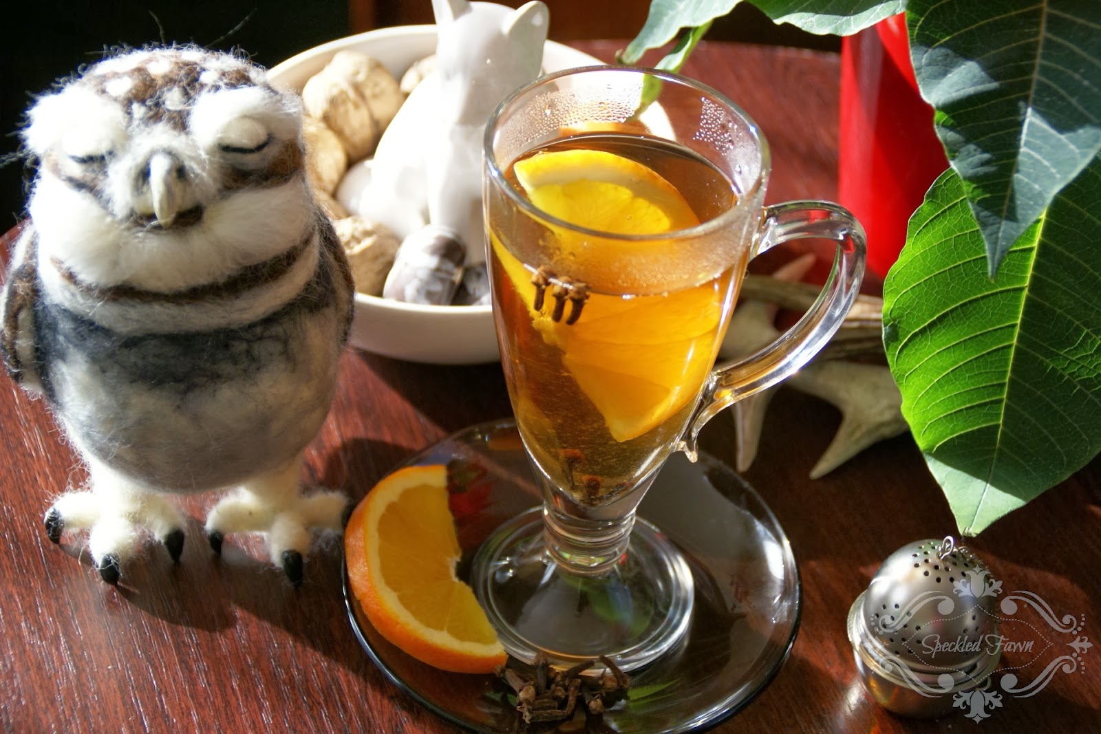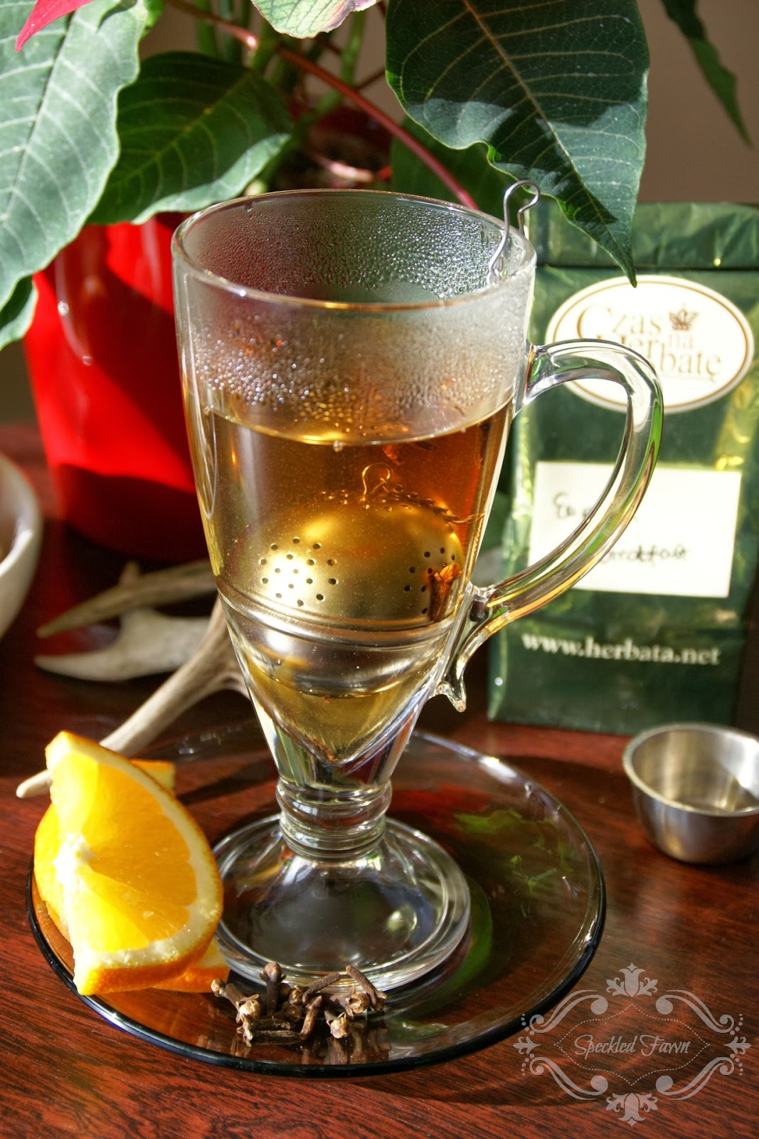 A po zaparzeniu wrzucam jeszcze plasterek…pomarańczy 😀 daje delikatny smak, nie tak bardzo wyrazisty jak cytryna.