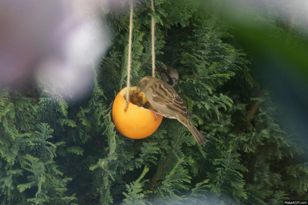 Mała aktualizacja sytuacji z karmikami: nie ma ich 😛 zjadły wszystko, utrzymało się jedynie trochę smakołyków w pomarańczach 😉 I właśnie tam dzieje się niezła przyczajka, żeby do nich się dostać. Spójrzcie na poniższe zdjęcie: