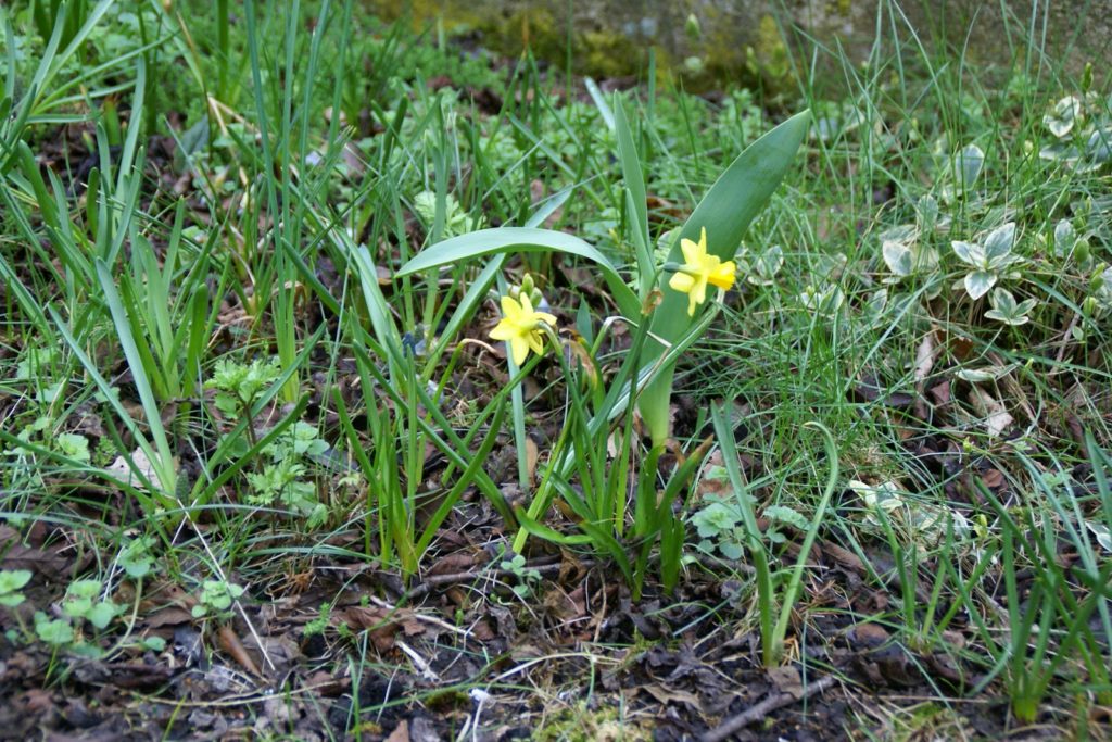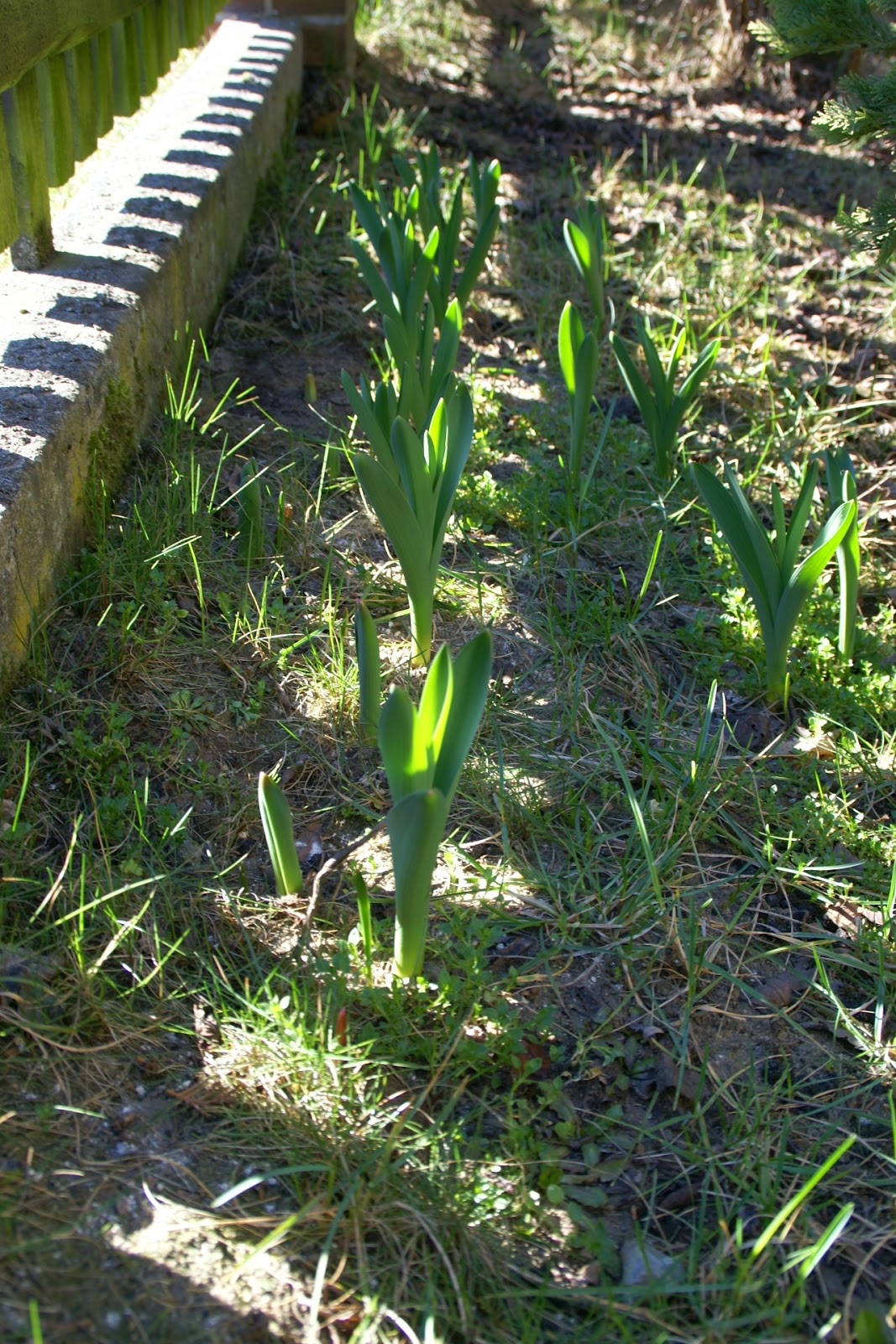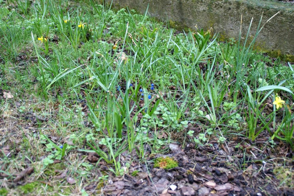 Obecnie krokusy już przekwitły, teraz to miejsce wygląda jak poniżej. Dużo liści, kwiatów na razie brak :/ czekam aż się wreszcie pojawią szafirki, posadziłam ich tam najwięcej.