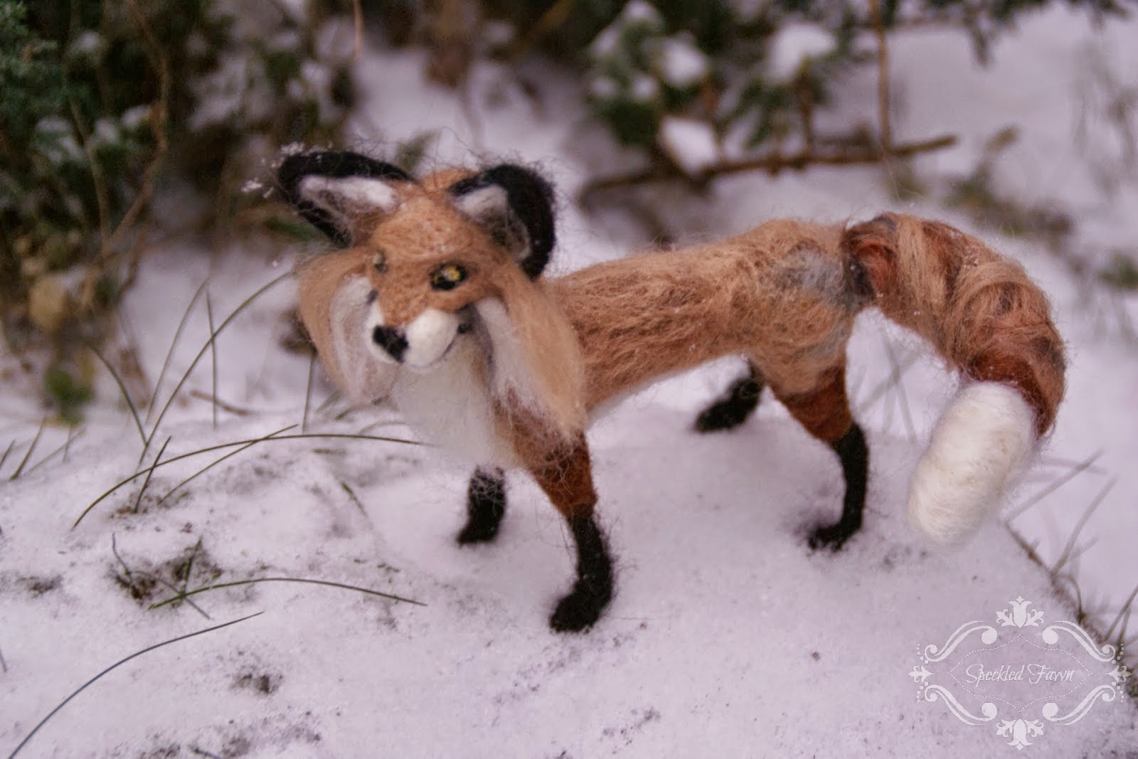 Po jeżu postanowiłam się doszkolić i zaczęłam oglądać tutoriale na youtube. Niestety w jednym z takich instruktarzy spodobał mi się mały rudzielec, którego postanowiłam zrobić. To był ostatni raz kiedy trzymałam się jakiejś filmowej instrukcji 😉 Lis nijak nie wyszedł mi tak jak powinien, na filmie wszystko cacy łatwo i przyjemnie a u mnie ogrom frustracji ;)) Jak tak teraz na niego patrzę, to stwierdzam, że jest jeszcze brzydszy niż zapamiętałam 😛 no cóż, nie zawsze wszystko musi wyjść! 😉