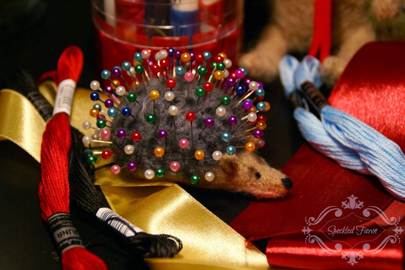 W ramach „odpoczynku” po utrutym jeleniu, zrobiłam jeża 🙂 Przemiły to stworek, a modny i kolorowy, że hej! ;)) Podczas nauki szycia, służył mi swoimi igiełkami, a niedługo potem znalazł już nowy dom (mam nadzieję, że dobrze się sprawuje!).