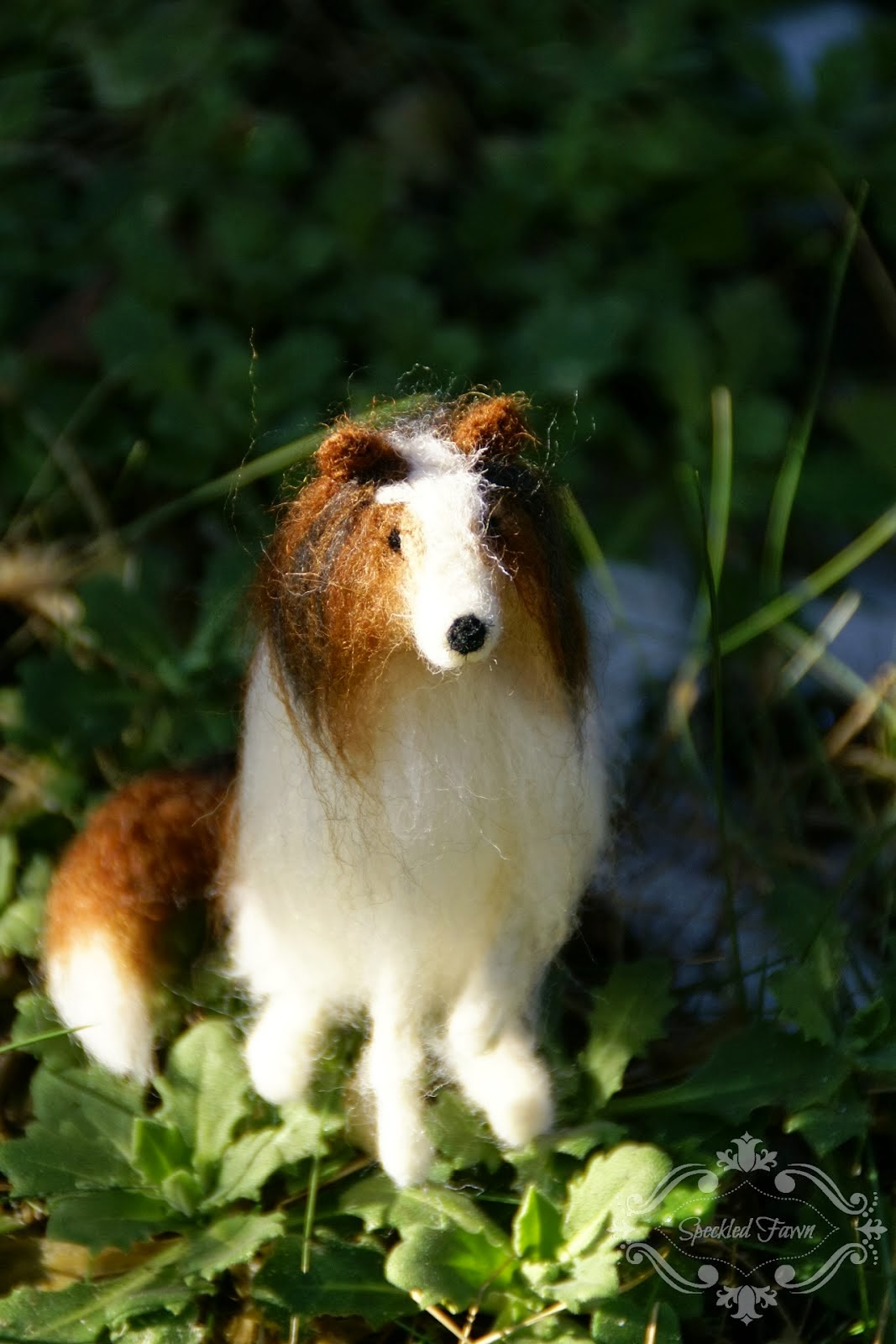 Niedługo później trafiłam na pinterest na zdjęcie przecudnego filcowego collie. Tak bardzo mi się psina spodobała, że zrobiłam swoją własną Lessie 🙂 Nadal jest ze mną i strzeże obejścia 😛