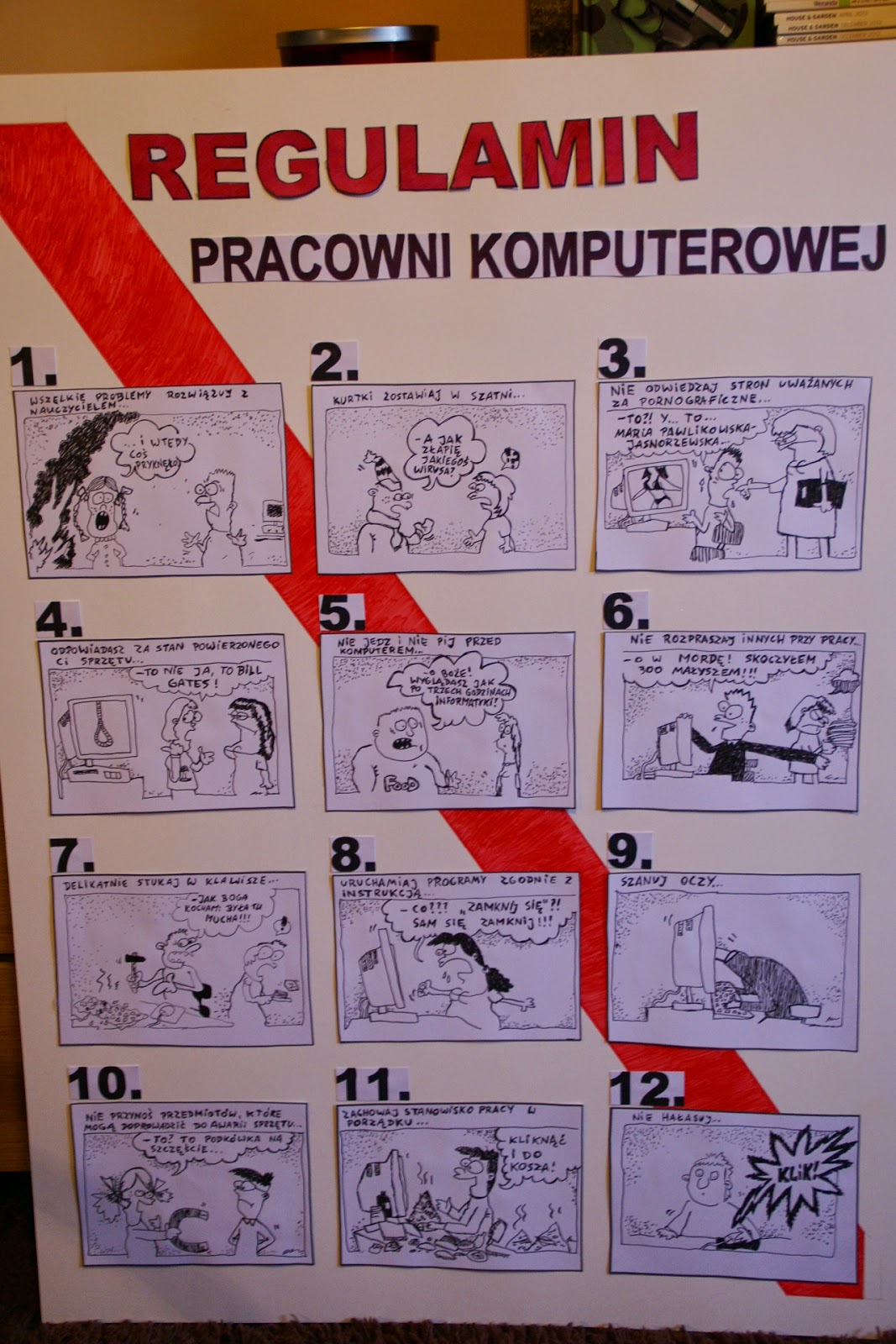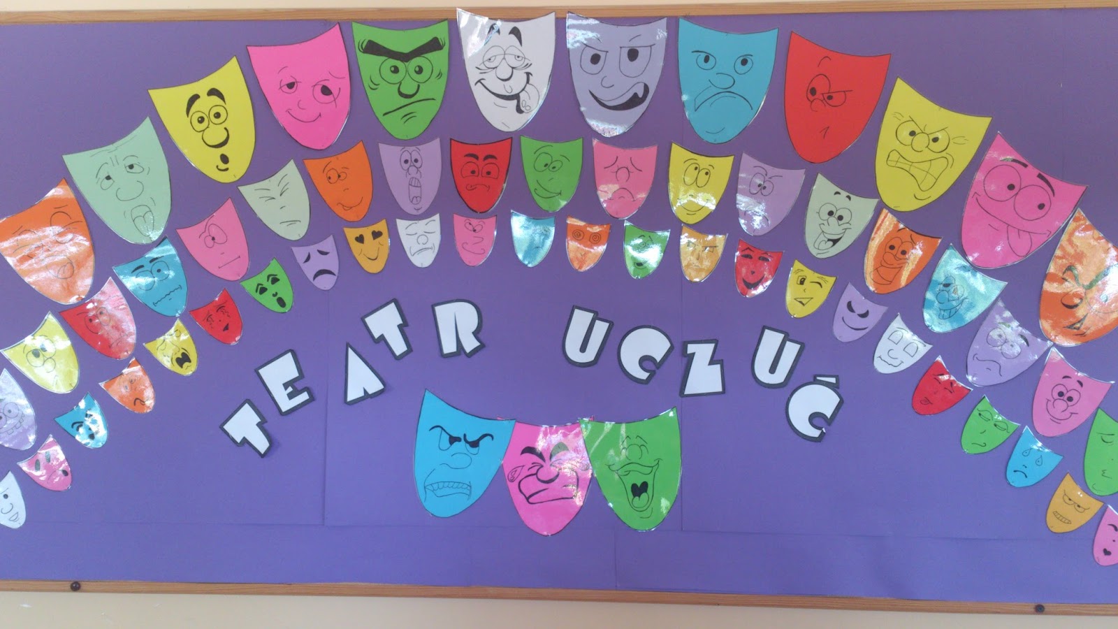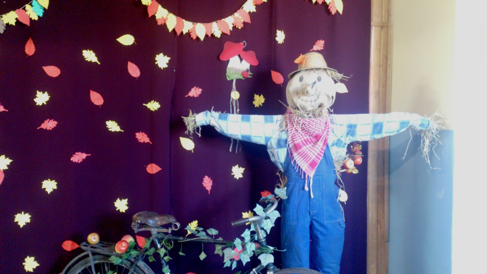 Od czasu do czasu zdarza się, że marudzę Wam tutaj co to za dekoracje mam znowu do namalowania czy przygotowania w pracy ;)) Były już wszystkie pory roku i wszystkie istotne w szkole okazje, więc pomyślałam, że zrobię post podsumowujący, bo wiem, że kilkoro nauczycieli mojego bloga odwiedza 🙂 W naszym gimnazjum na głównym korytarzu znajduje się ściana z bordowymi kotarami, to zawsze na nich (oprócz ozdób w oknach i kilku innych miejscach) koncentrują się wszelkie dekoracje i ozdoby okolicznościowe 🙂