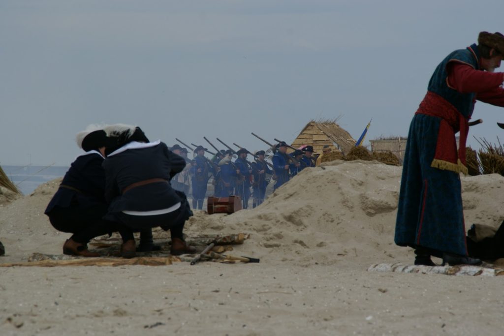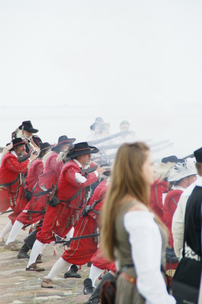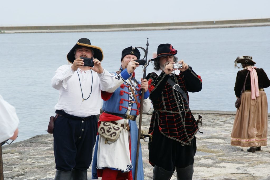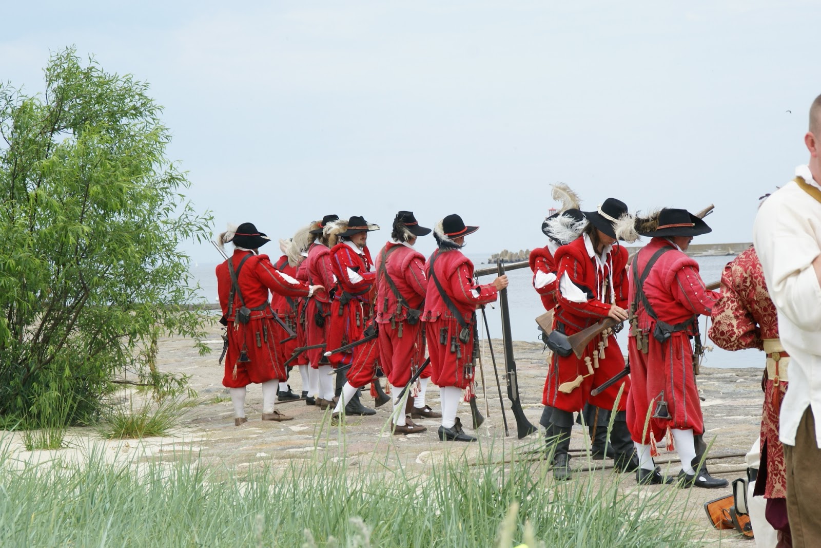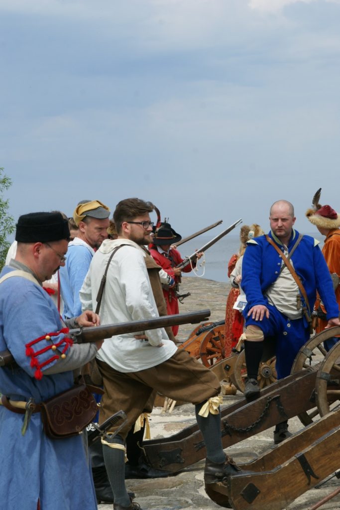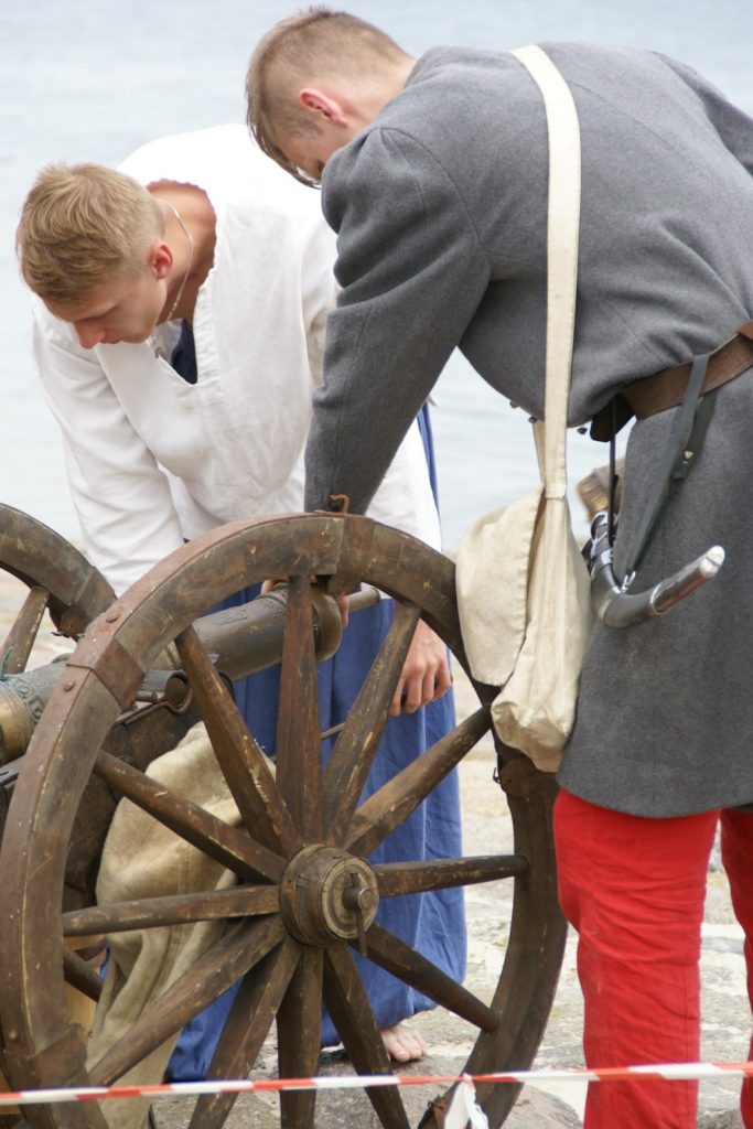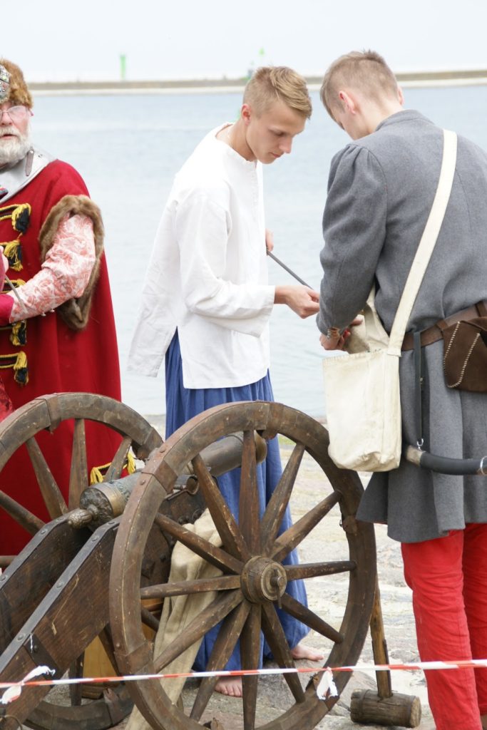 Przed bitwą na plaży, panowie ze strzelbami ustawili się wzdłuż falochronu razem z kilkoma obsługującymi armaty 😛 najpierw oddali kilka strzałów na próbę, później czekali na… prom szwedzki ;P bo w końcu bitwa ze Szwedami tak? ;D