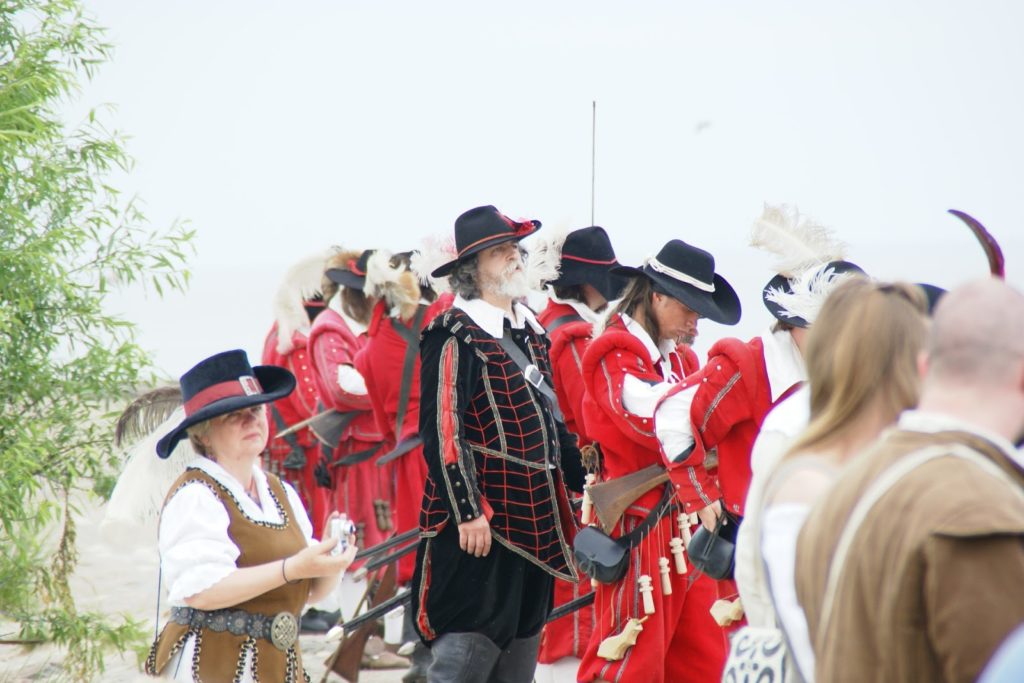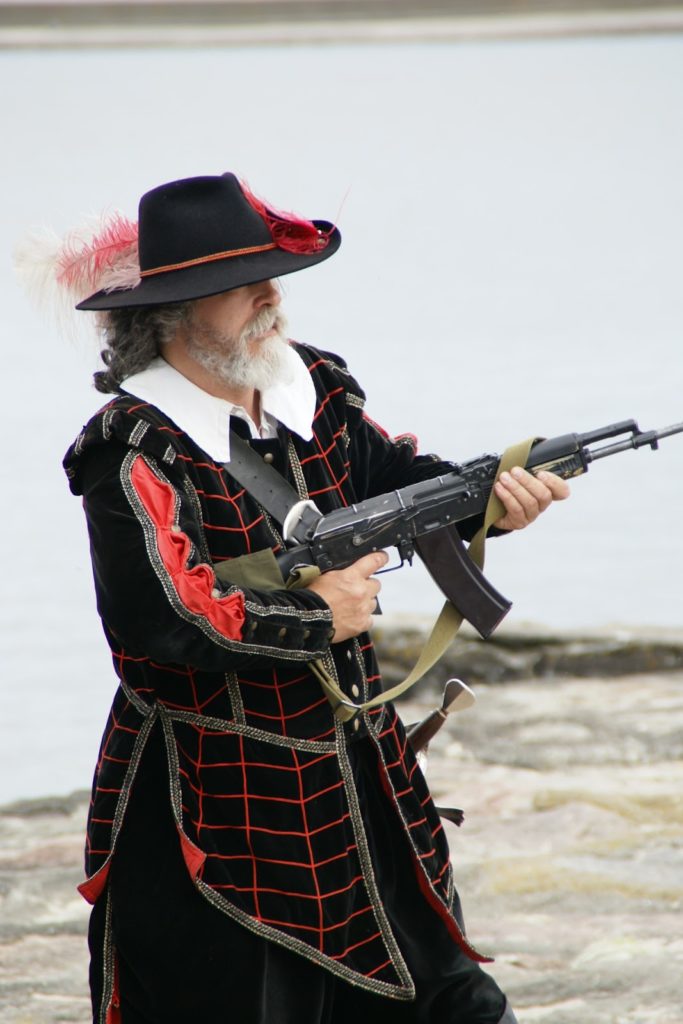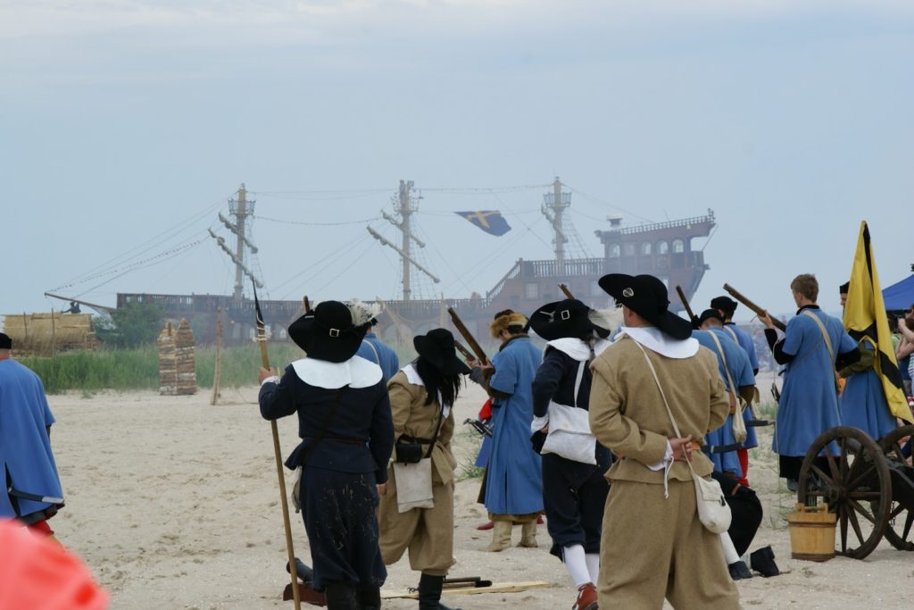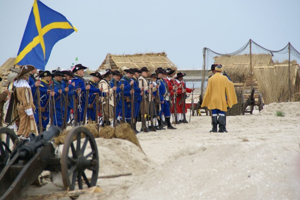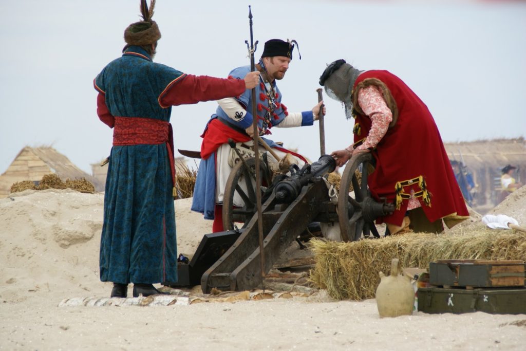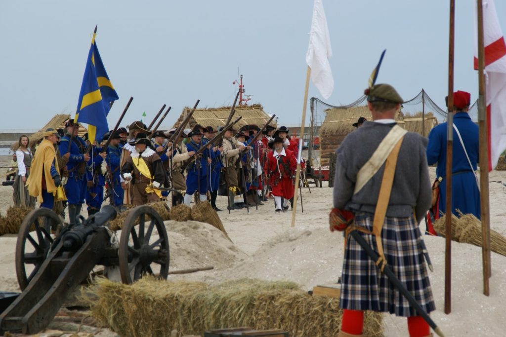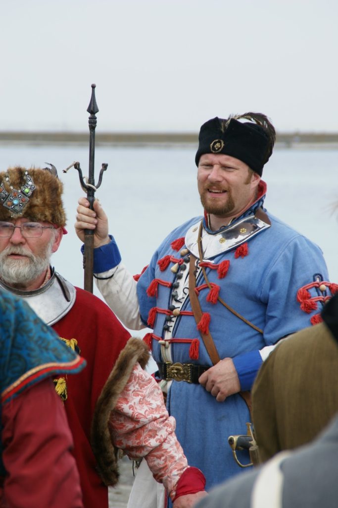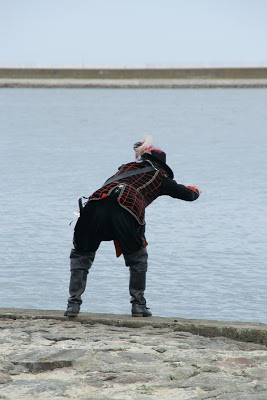 Przed bitwą na plaży, panowie ze strzelbami ustawili się wzdłuż falochronu razem z kilkoma obsługującymi armaty 😛 najpierw oddali kilka strzałów na próbę, później czekali na… prom szwedzki ;P bo w końcu bitwa ze Szwedami tak? ;D