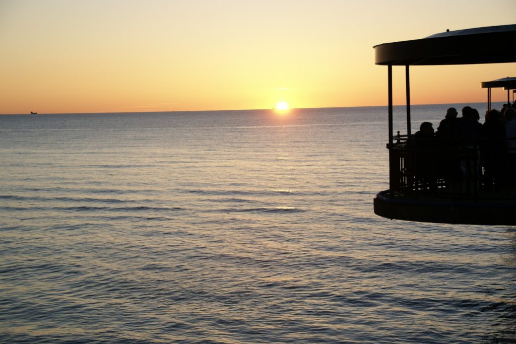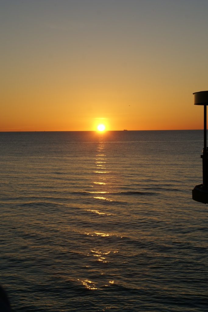 Będąc nad morzem koniecznie trzeba obejrzeć chociaż jeden zachód słońca 😀 szkoda tylko, że nie pomyśleliśmy o tym, że będzie chłodniej i ktoś wybrał się w cienkiej koszuli i sandałach (nie, tym razem nie ja;P).