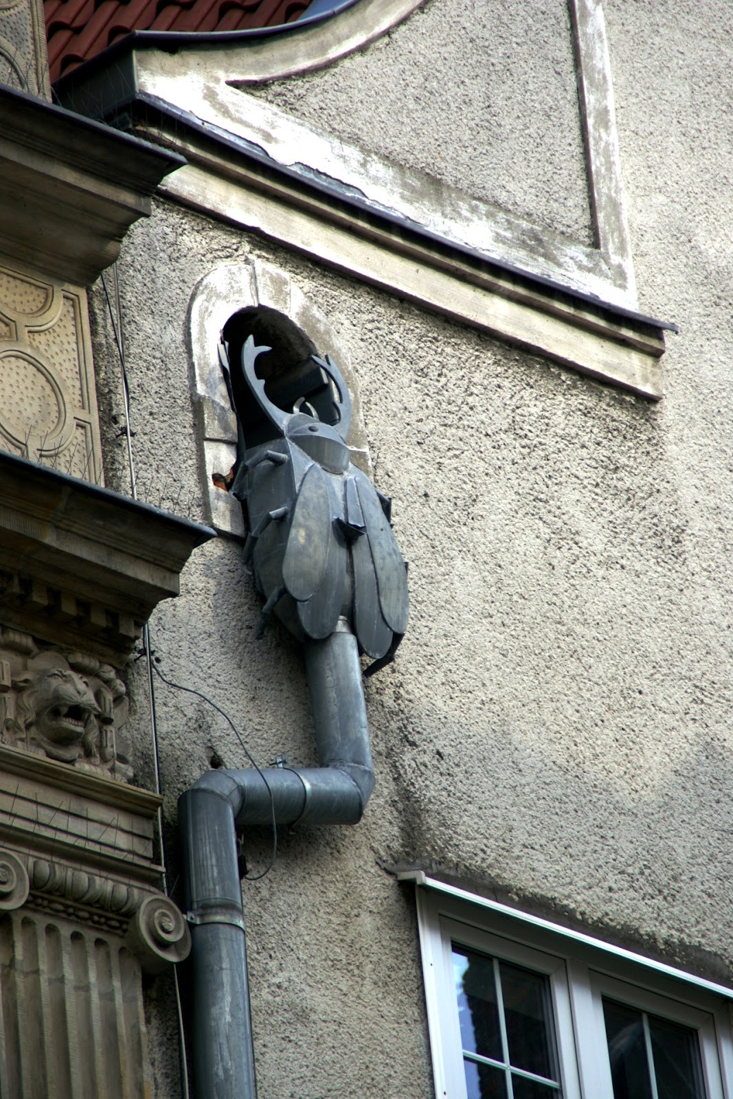 Ciągle zauważałam też jakieś ciekawe detale typu żółw na szczycie budynku czy żuk-rynna 🙂