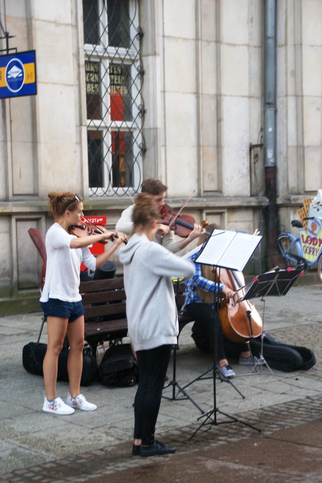 Uroku spacerom dodawali różnego rodzaju artyści uliczni 😉 Był i pirat z papugą i kobieta siedząca w powietrzu. A w tle piękne dźwięki skrzypiec i wiolonczeli. Można się zauroczyć tą całą scenerią 😛
