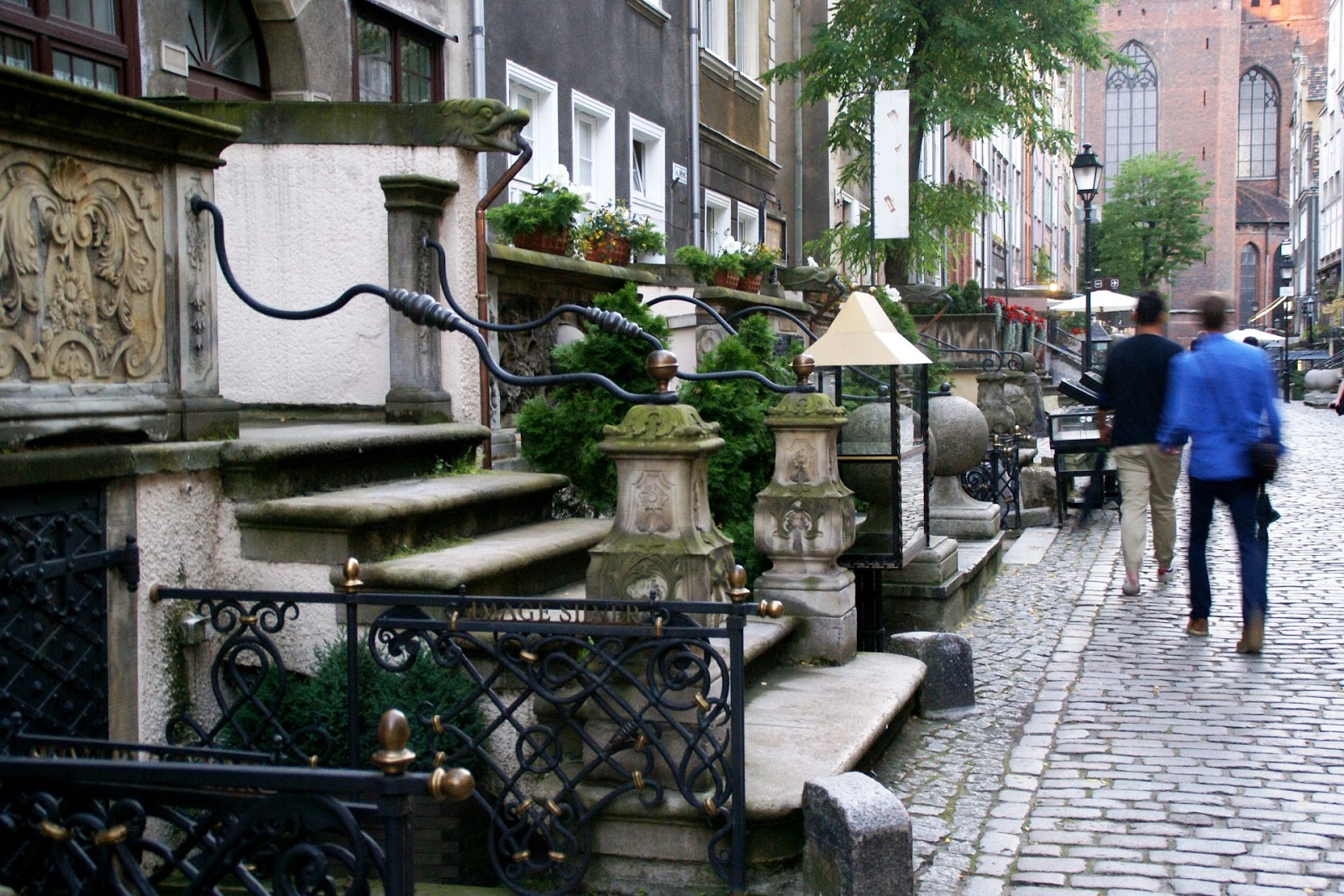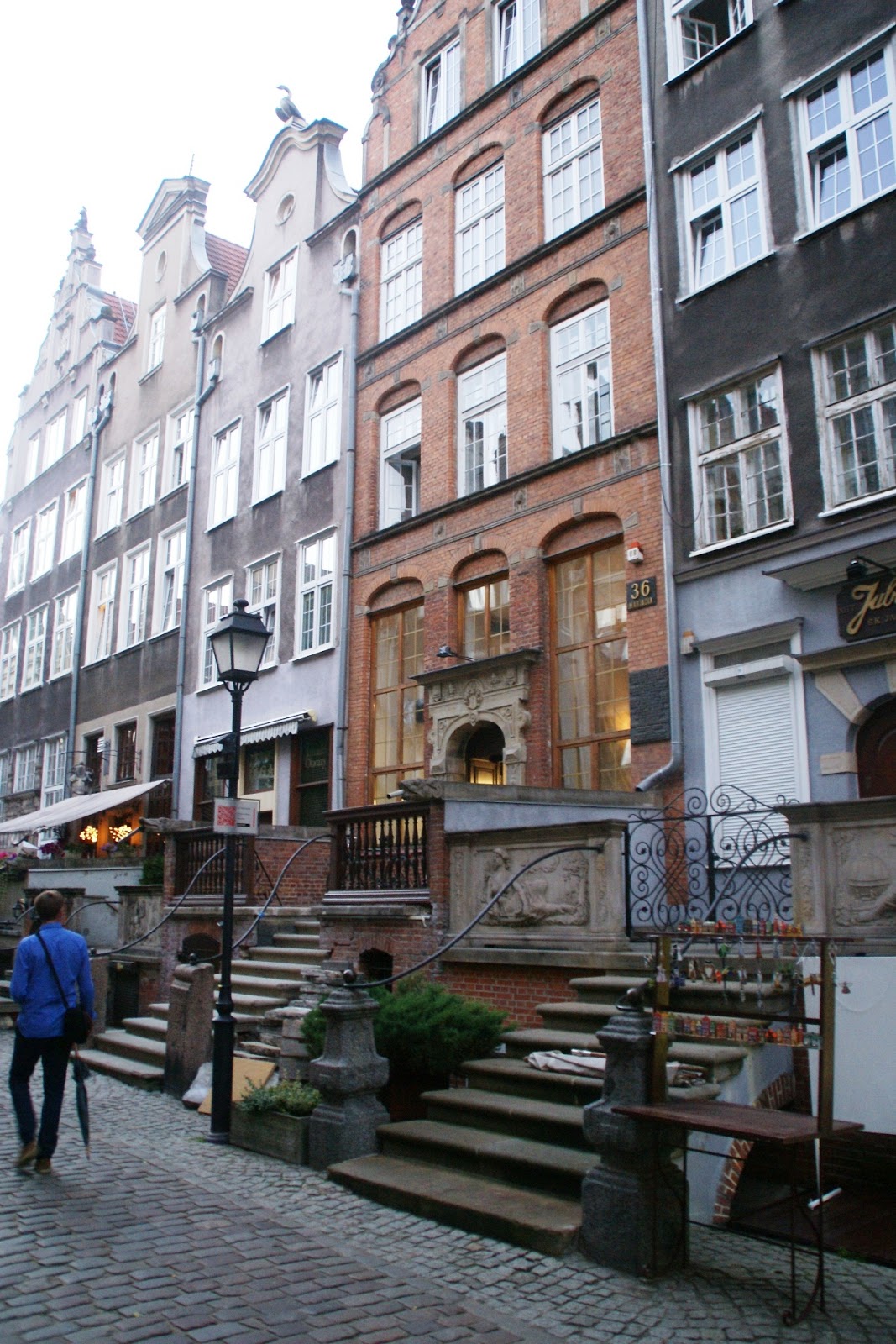 To podobno najpiękniejsza uliczka w Gdańsku (nazwy niestety nie pamiętam), kiedyś pełna złotników. Teraz też w ciągu dnia prawie przed każdymi schodami można podziwiać biżuterię z bursztynami 🙂 My niestety byliśmy tam już późnym wieczorem, więc się nie załapałam, ale miejsce i tak magiczne 😉