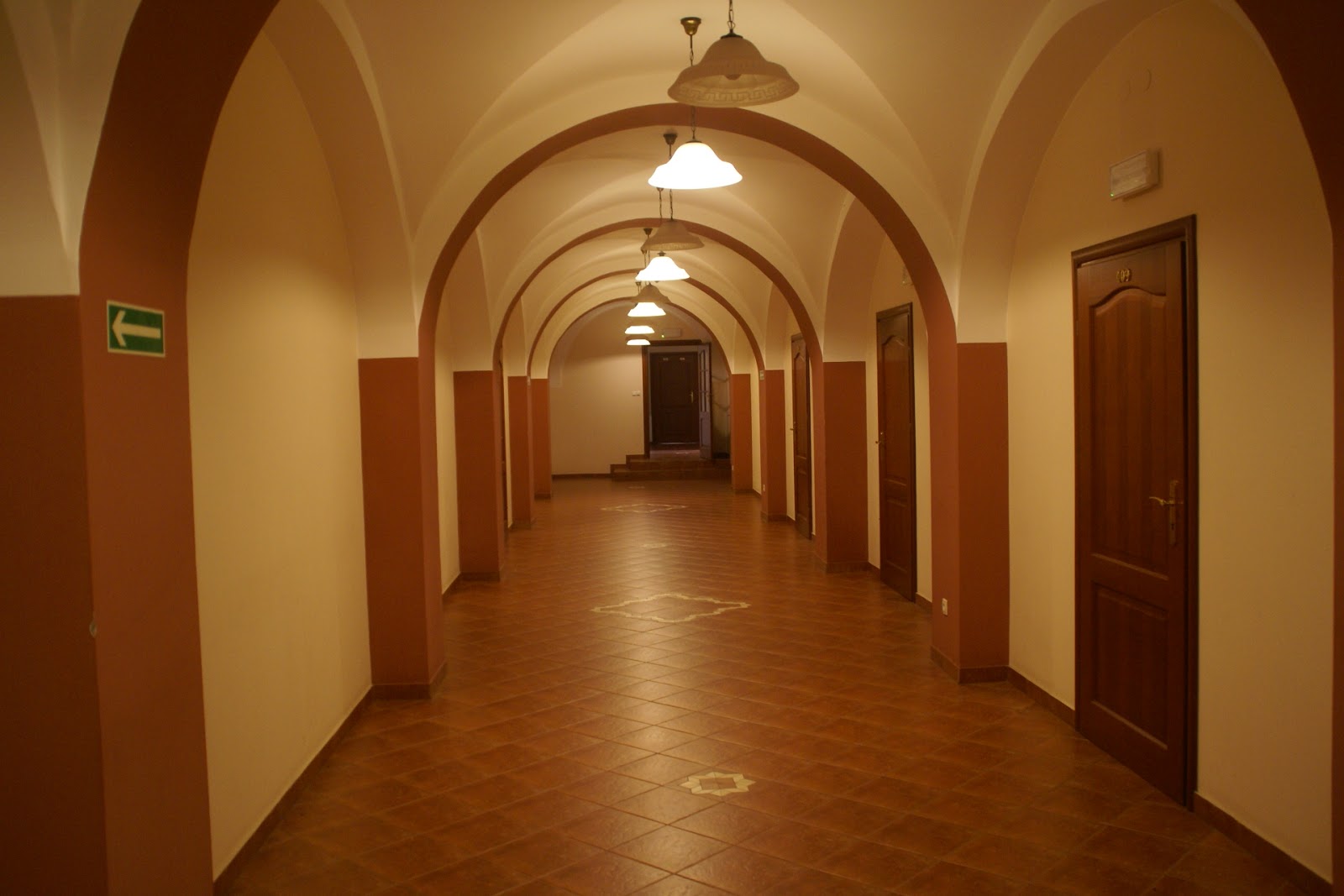 To korytarz w jednym z hoteli w Książu, budynek na przedzamczu.