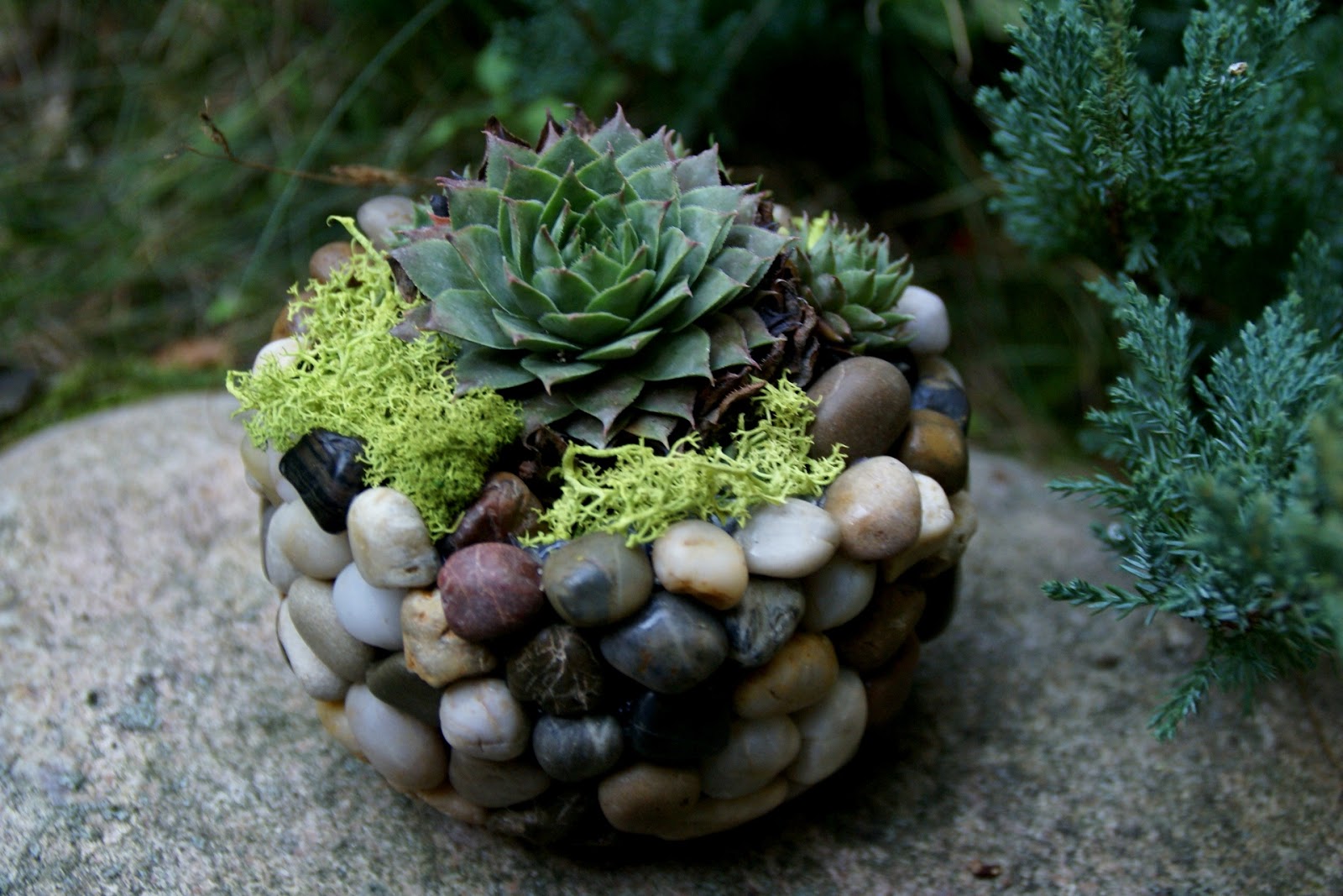 Taka doniczka będzie też fantastycznie wyglądać zrobiona z białych kamieni – np. we wnętrzach nowoczesnych/skandynawskich/w nadmorskim stylu.