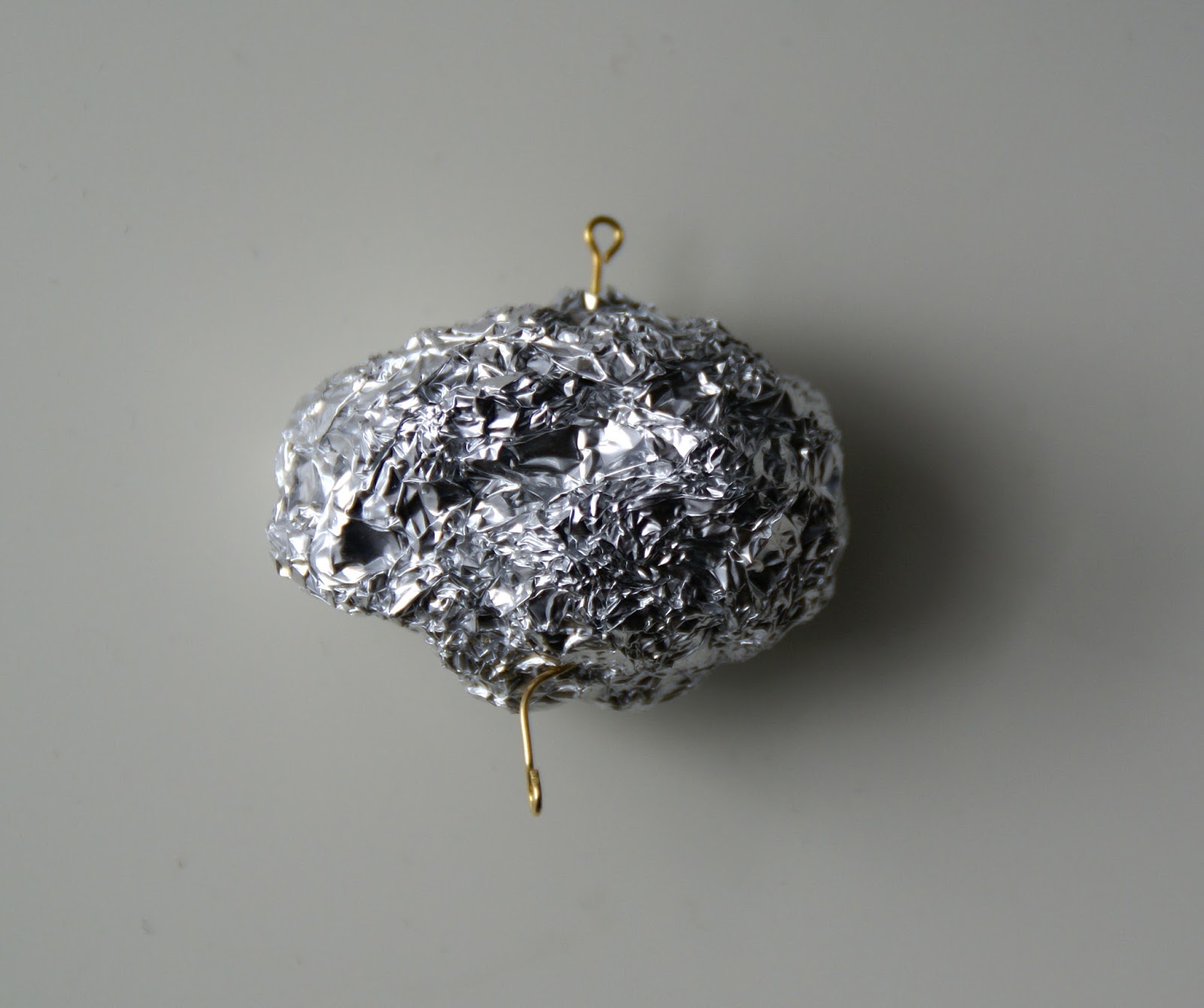 Z folii aluminiowej zrobiłam kuleczki, trochę mniejsze niż ptaki miały być docelowo. W kulki wbijałam gotowe druciki na górze i dole, oczywiście jak najrówniej.
