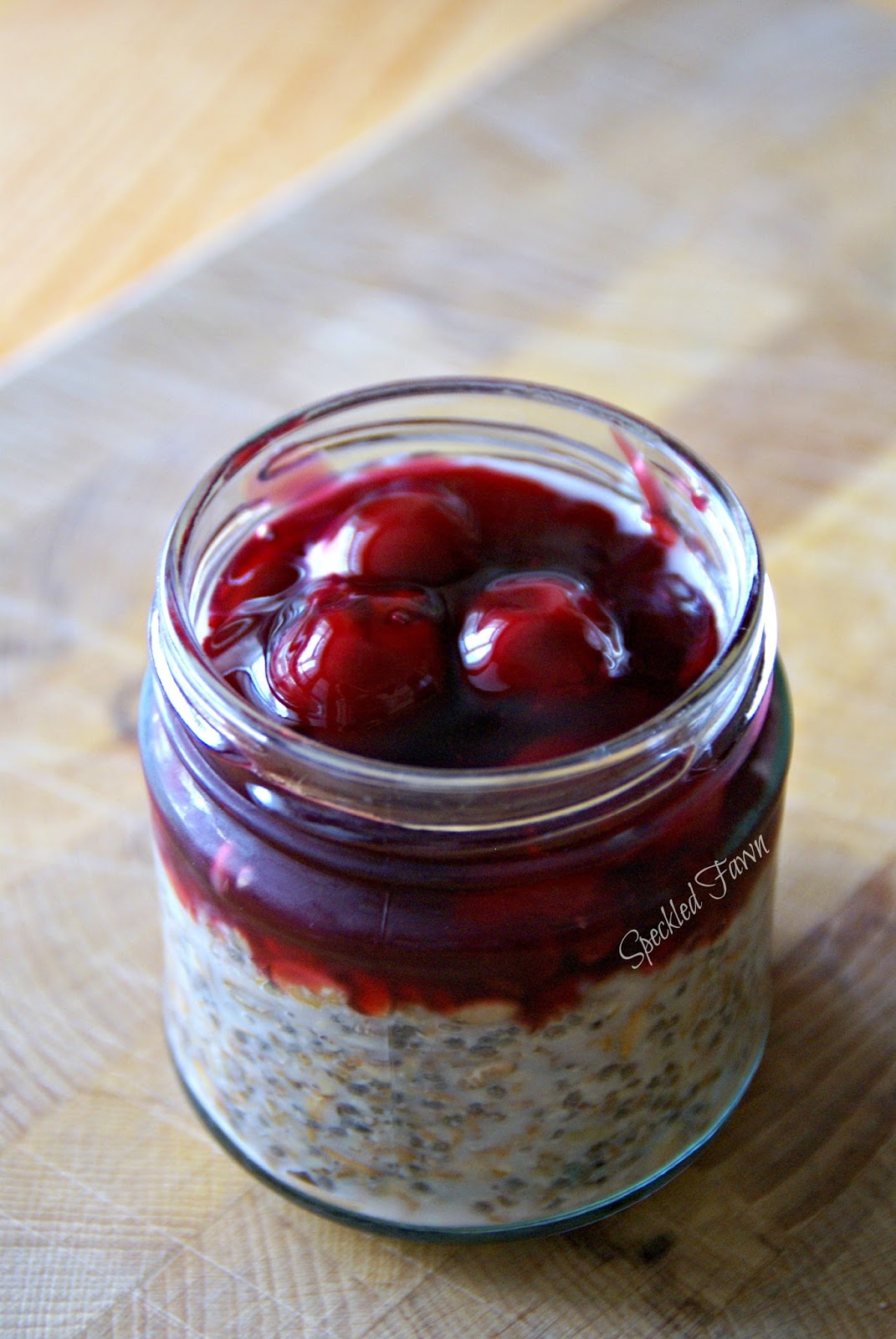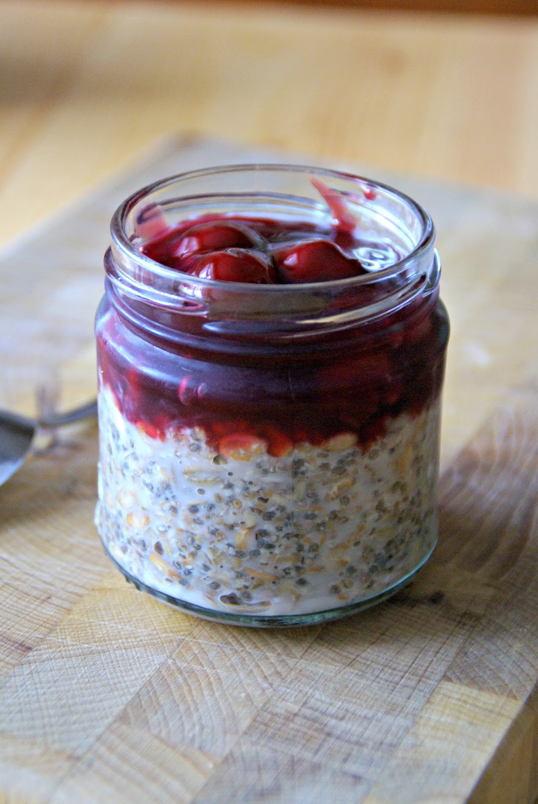 Ostatnimi czasy do pracy, oprócz kanapek, brałam sobie taką oto przekąskę. Mieści się w małym słoiczku po musztardzie, ale niech Was te rozmiary nie zmylą – całość jest baaardzo sycąca i zwykle jem ją na dwa razy 😉 Przepis zobaczyłam tutaj (od 1:14). Czyli po prostu: