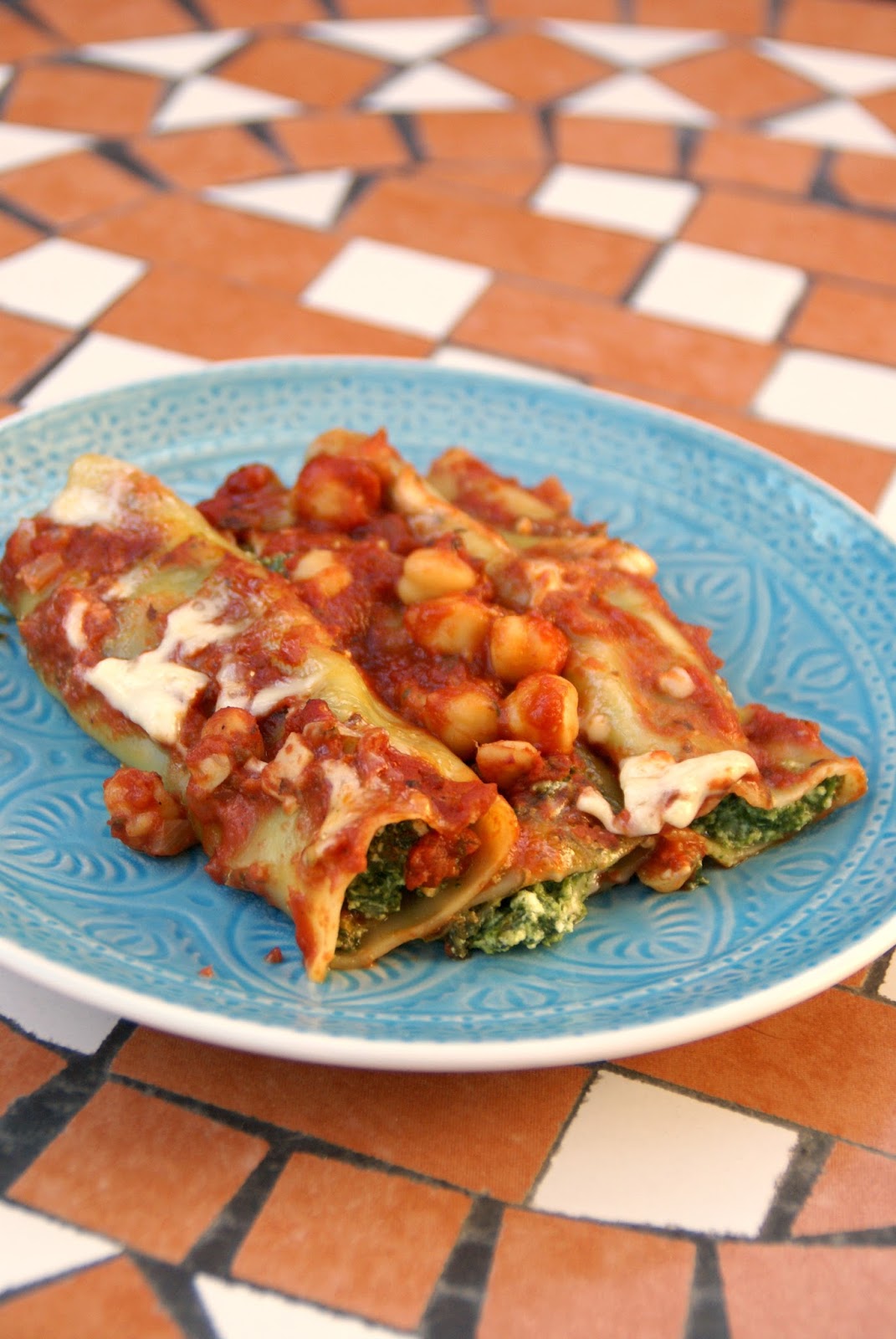 No cóż, nie da się ukryć, ostatnio mam fazę na makarony 😛 Lasagne, zapiekanki z makaronem i teraz to – włoskie cannelloni ze szpinakiem w sosie pomidorowym 😀 Zachwytom nad nim nie było końca, więc najwyraźniej całkiem dobrze wyszło ;)) Czasu też aż tak dużo nie potrzeba, a gdyby wziąć gotowy sos pomidorowy to już w ogóle chwila i jest obiad 🙂