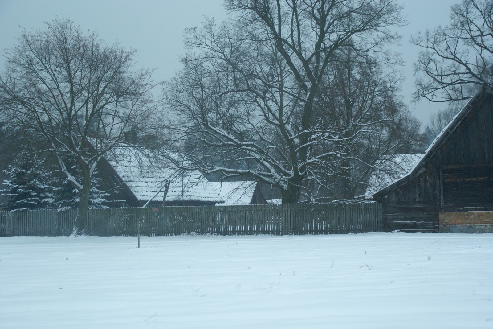 To była paskudna sobota 😛 Wiało, było chłodno i do tego jeszcze mżyło ;)) Dojechaliśmy do miejsca, w którym mieliśmy się spotkać z agentem biura nieruchomości i trochę się przeraziliśmy patrząc na kawałek ziemi, który uznaliśmy za tą ”naszą” działkę 😛 Na przeciwko był jakiś hotel, a zaraz zza lasu dochodziły dźwięki z trasy – same tiry 😉 Na szczęście okazało się, że to nie tam 😛 Ruszyliśmy dalej autem za panią agentką i od razu zachwyciła nas ta mała, stara wiocha :)) Wiele domów to nieduże drewniane chaty ze strzechą na dachu, do tego stare dęby i kamienne stodoły… (sprawdziłam – to wieś z początków XIXw.). I to wszystko 5km od dużego miasta 🙂 Byliśmy zachwyceni.