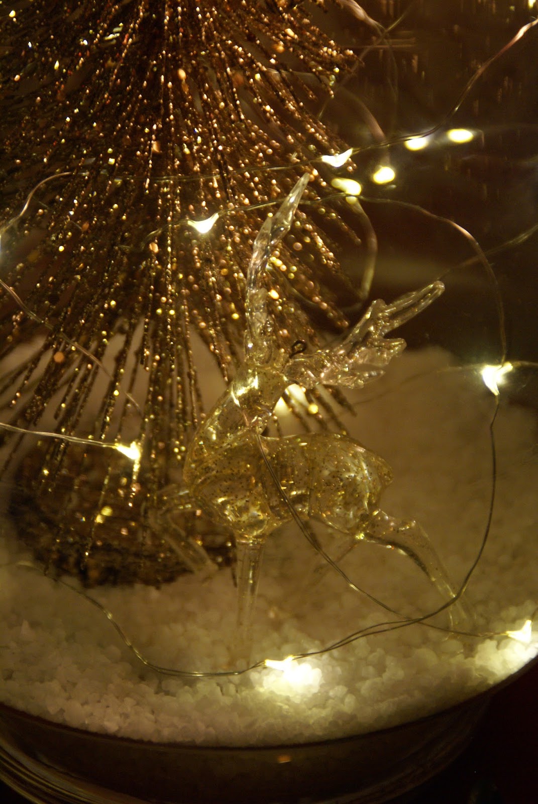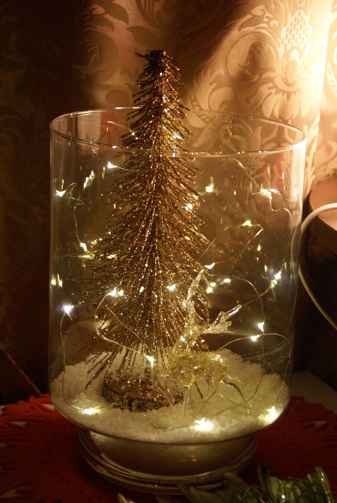 Reszta też już ustrojona w iście Greeswaldowskim stylu (jeśli ktoś oglądał ”Witaj Święty Mikołaju” to wie o czym mówię;P), więc zajęłam się jeszcze zrobieniem takiego małego stroika na kominek. Tym razem na złoto 🙂