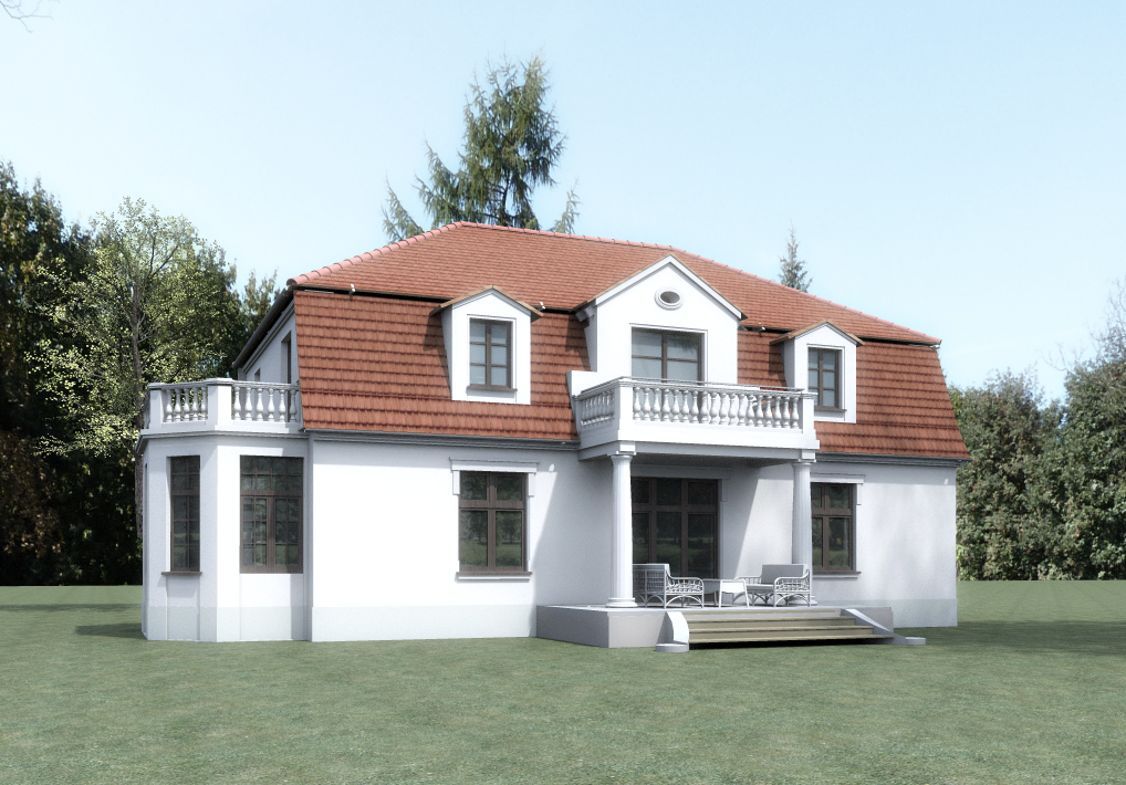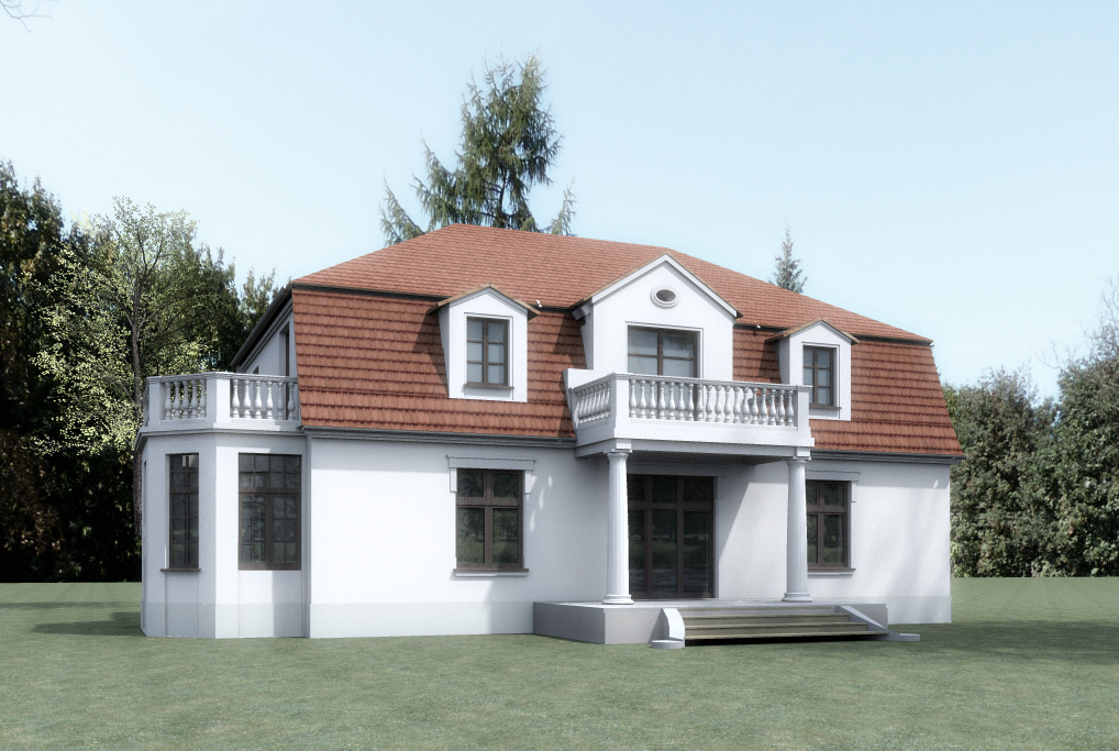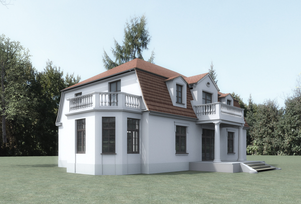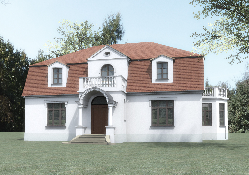 Jest! 😀 Dostaliśmy już taką ostateczną koncepcję naszego wymarzonego dworku 🙂 Teraz czekamy tylko na dostarczenie całości w wersji papierowej razem z całą tą techniczną stroną, ale to jak dom będzie wyglądał możecie już zobaczyć :))) Udało się stworzyć projekt wyglądający właściwie identycznie jak pierwowzór, jedyne z czym musieliśmy się dostosować to wysokość całego budynku – idealnie byłoby gdyby miał jakieś 9,5m, my wg. WZ zmieściliśmy się w 9.