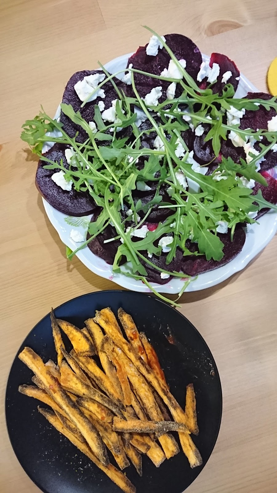 Polecam też wypróbować carpaccio z buraka 😀 Wystarczy gotowane buraki z Lidla pokroić w ładne plasterki, posypać kozim serem i dodać rukoli. Całkiem smacznie ;)) Nawet dla kogoś kto normalnie za burakami nie przepada (czyli ja).
