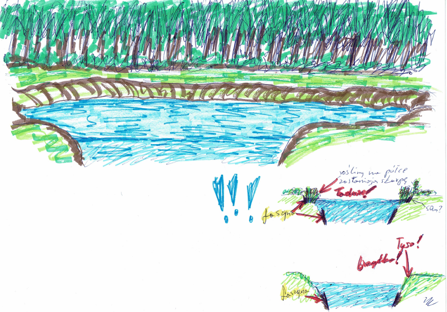 Powodzenia 🙂 JEstem pełen zazdrości, bo sam chciałbym mieć działkę ze stawem (nie mam tego i tego). Trzymam kciuki za powodzenie całej akcji, tak by staw jak najszybciej przypominał ten z rysunku 🙂