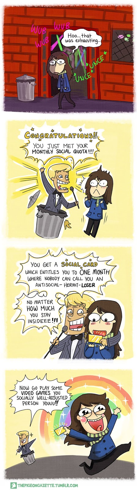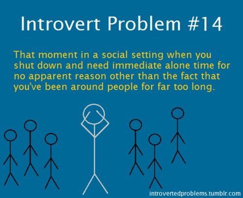 ”ten moment podczas sytuacji towarzyskich kiedy się wyłączasz i potrzebujesz natychmiastowej samotności bez żadnej konkretnej przyczyny oprócz tej, że za długo przebywasz wśród ludzi”